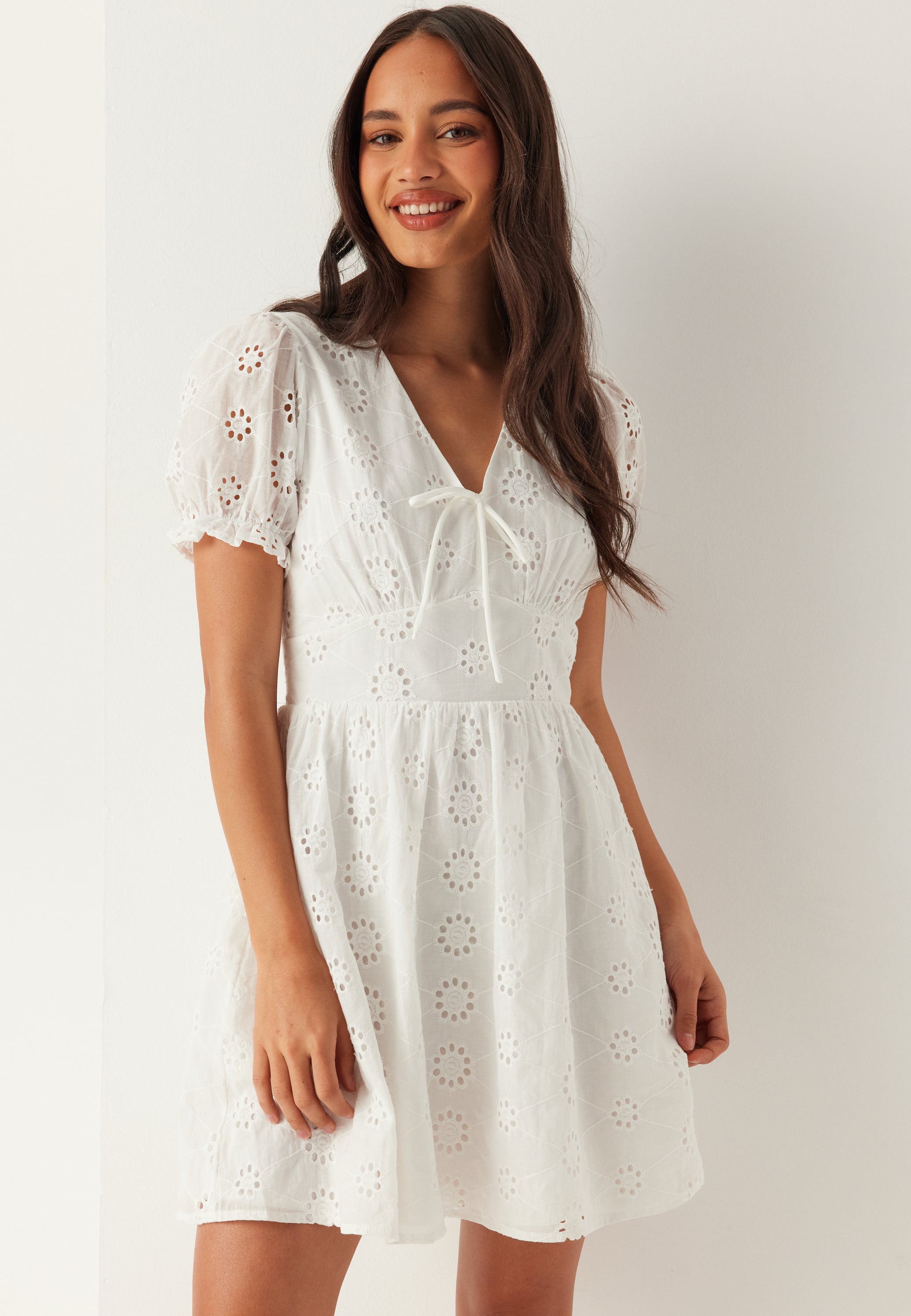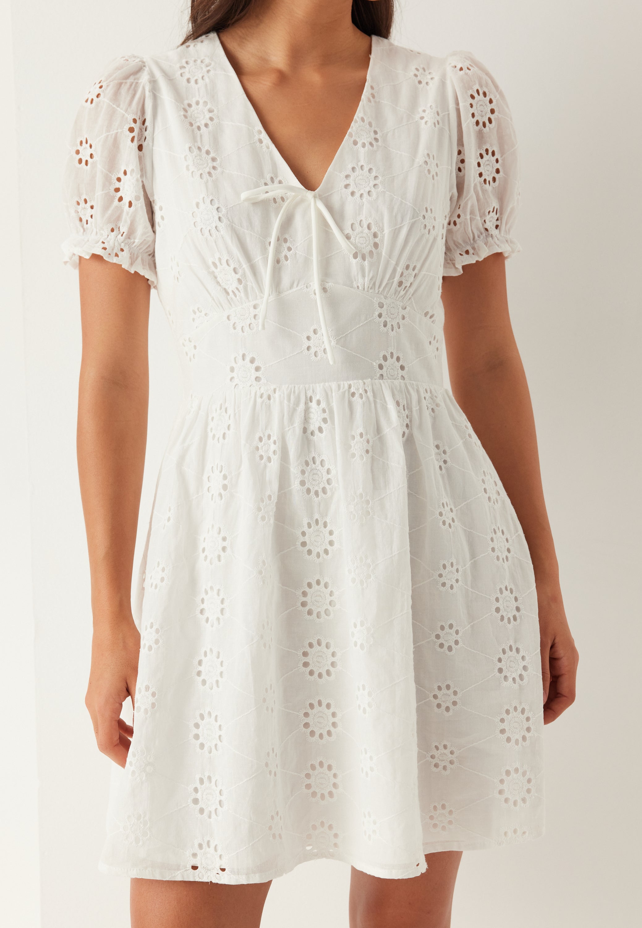 - V-shaped neckline with a knot detail