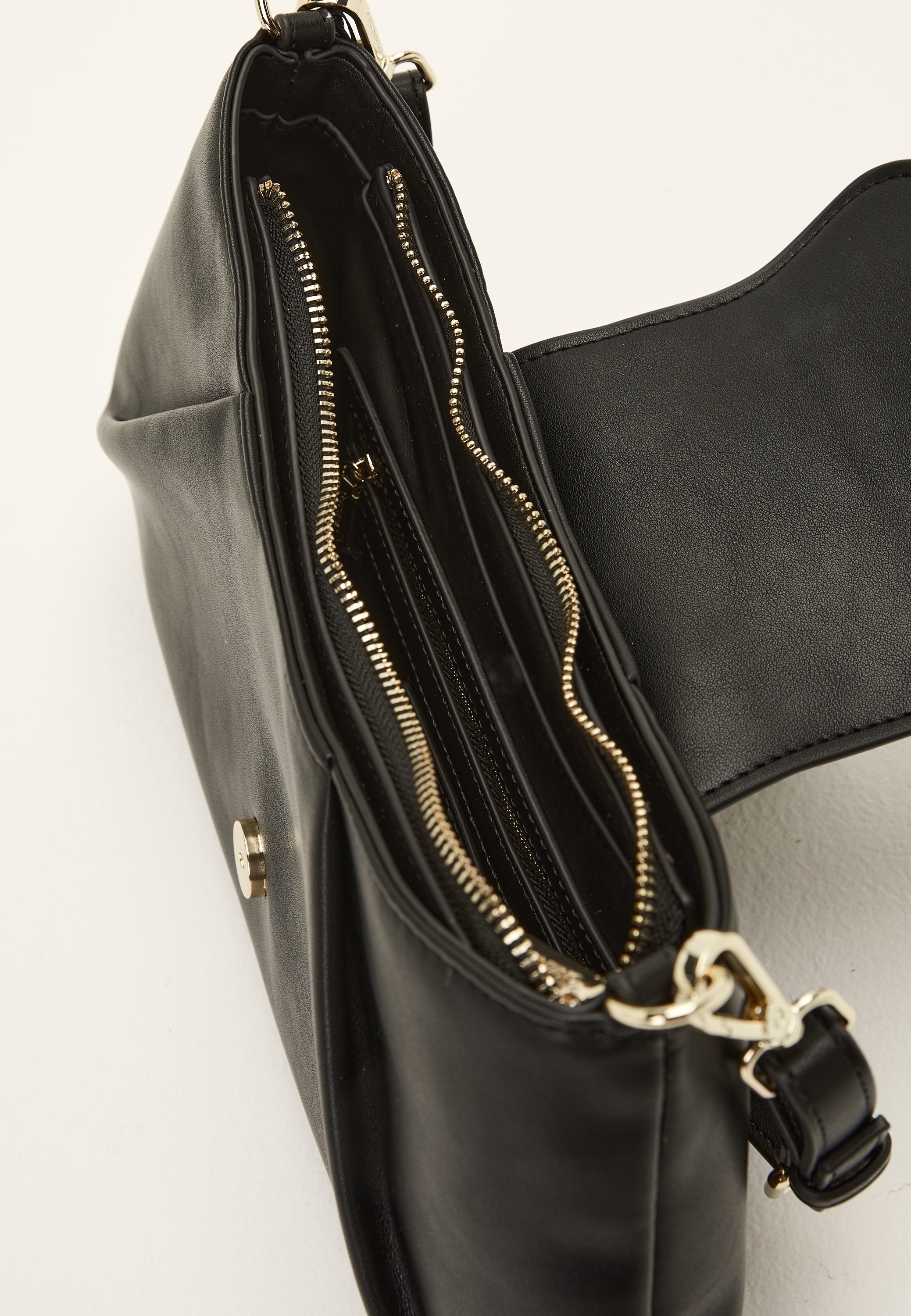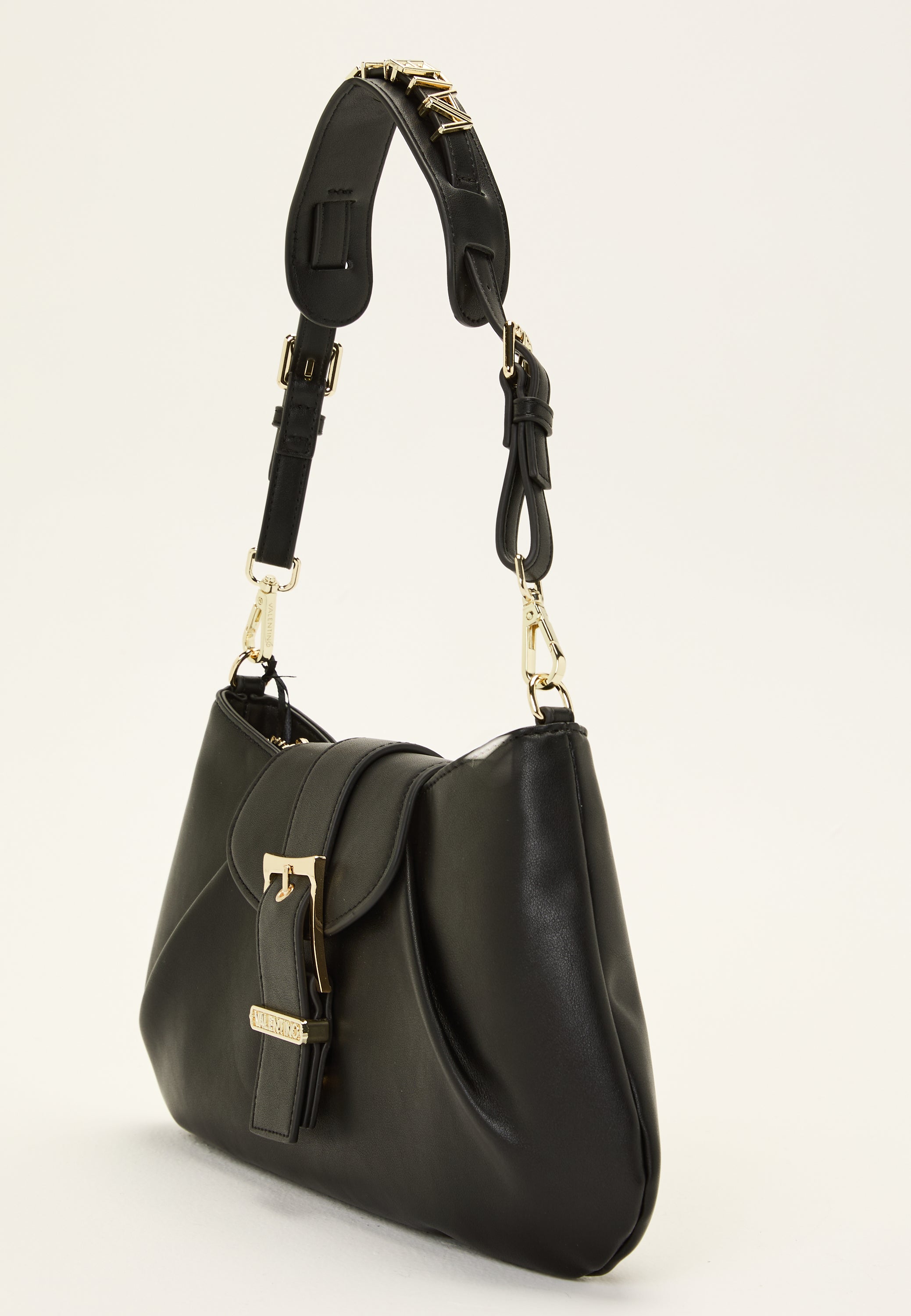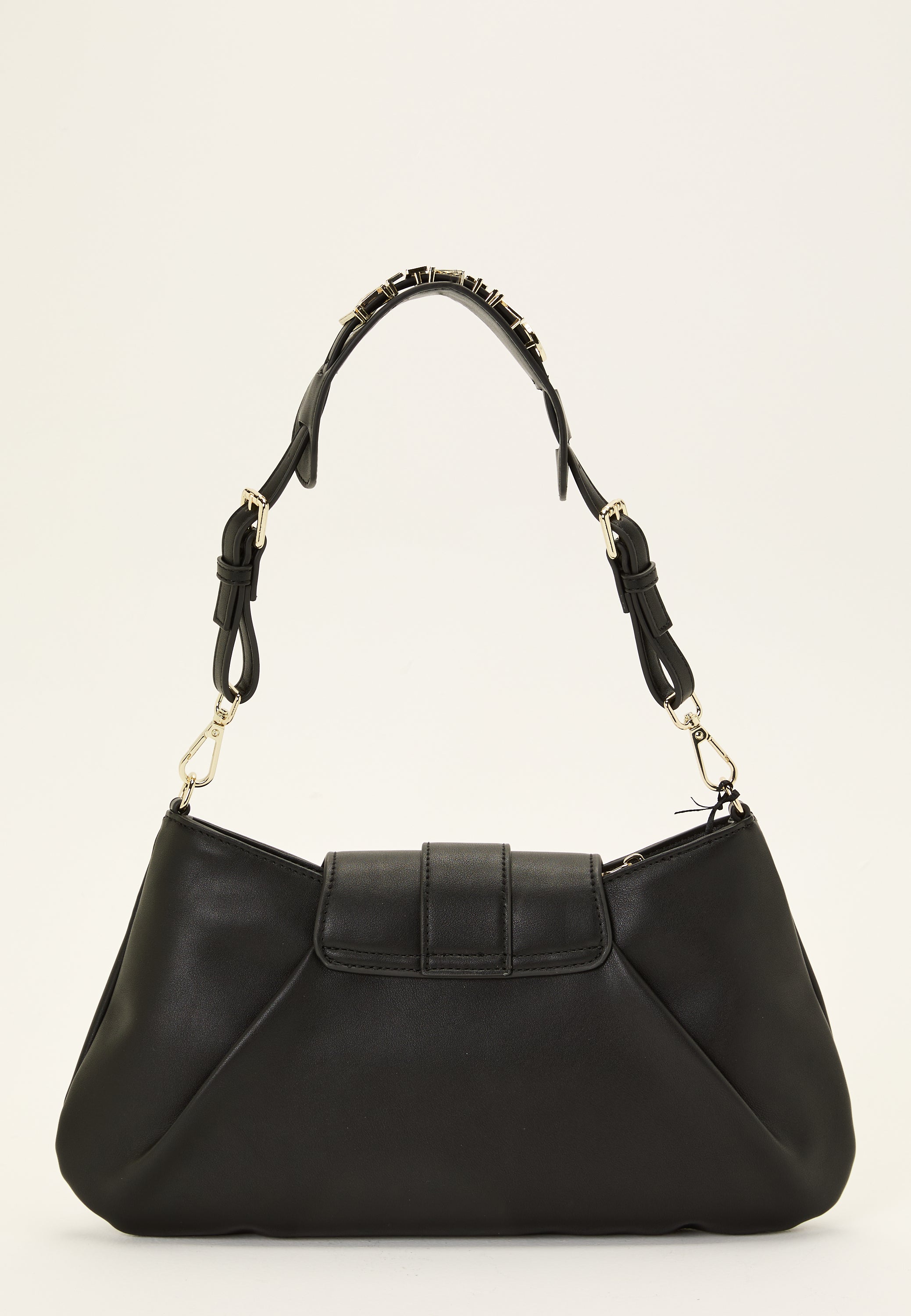 - Shorter shoulder strap with a metal logo at the top