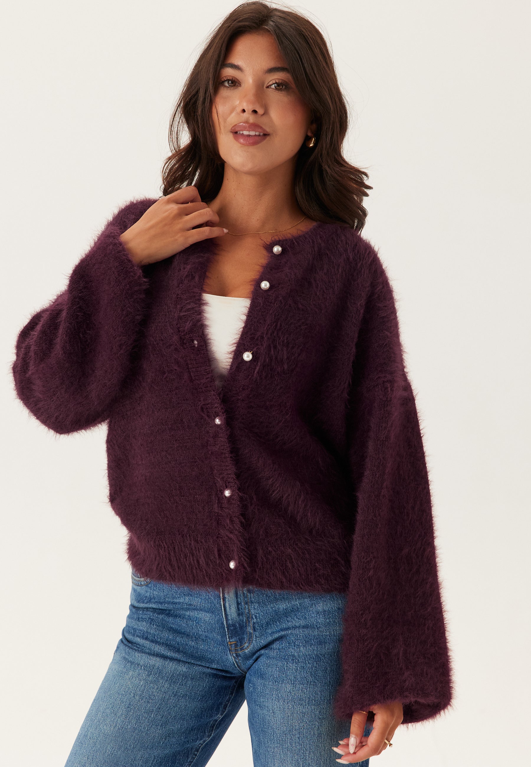 Fluffy Knitted Pearl Cardigan