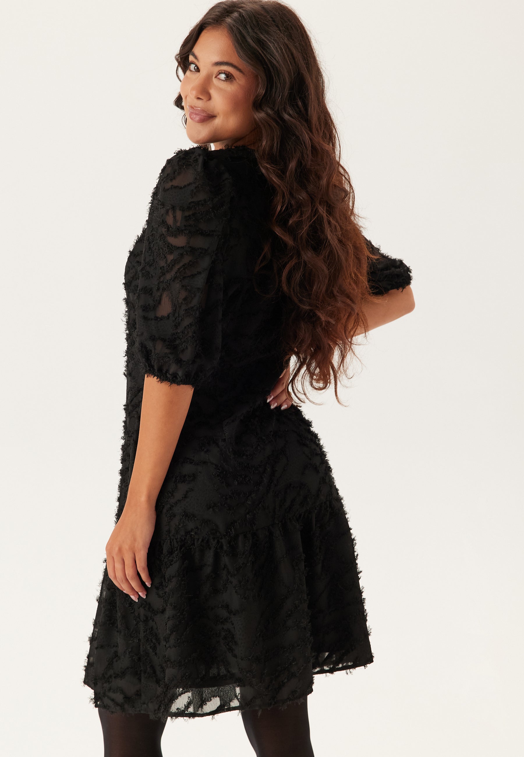 - Body-hugging fit with defined waist