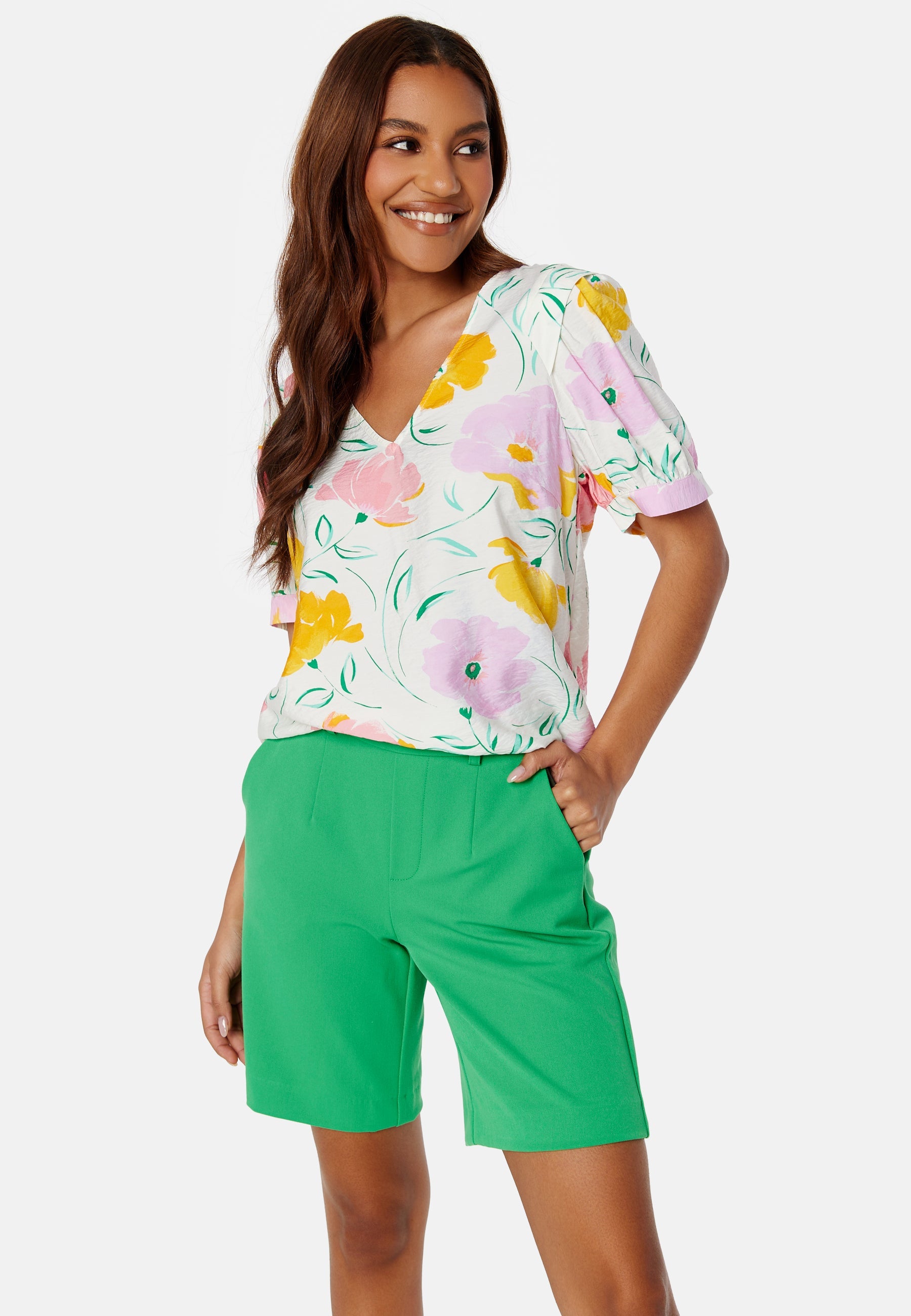 - V-neck neckline