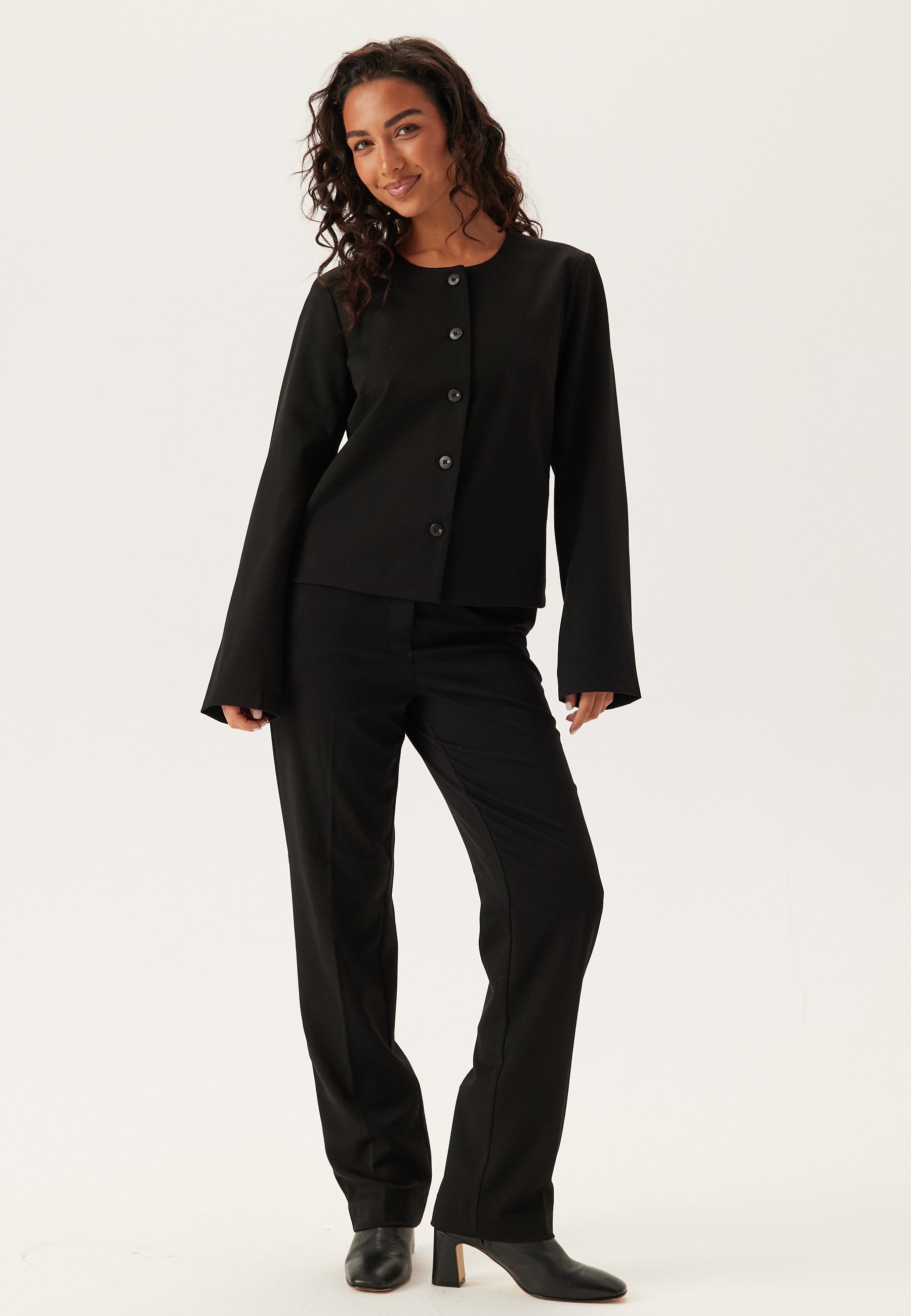 - Closure at the front with one button