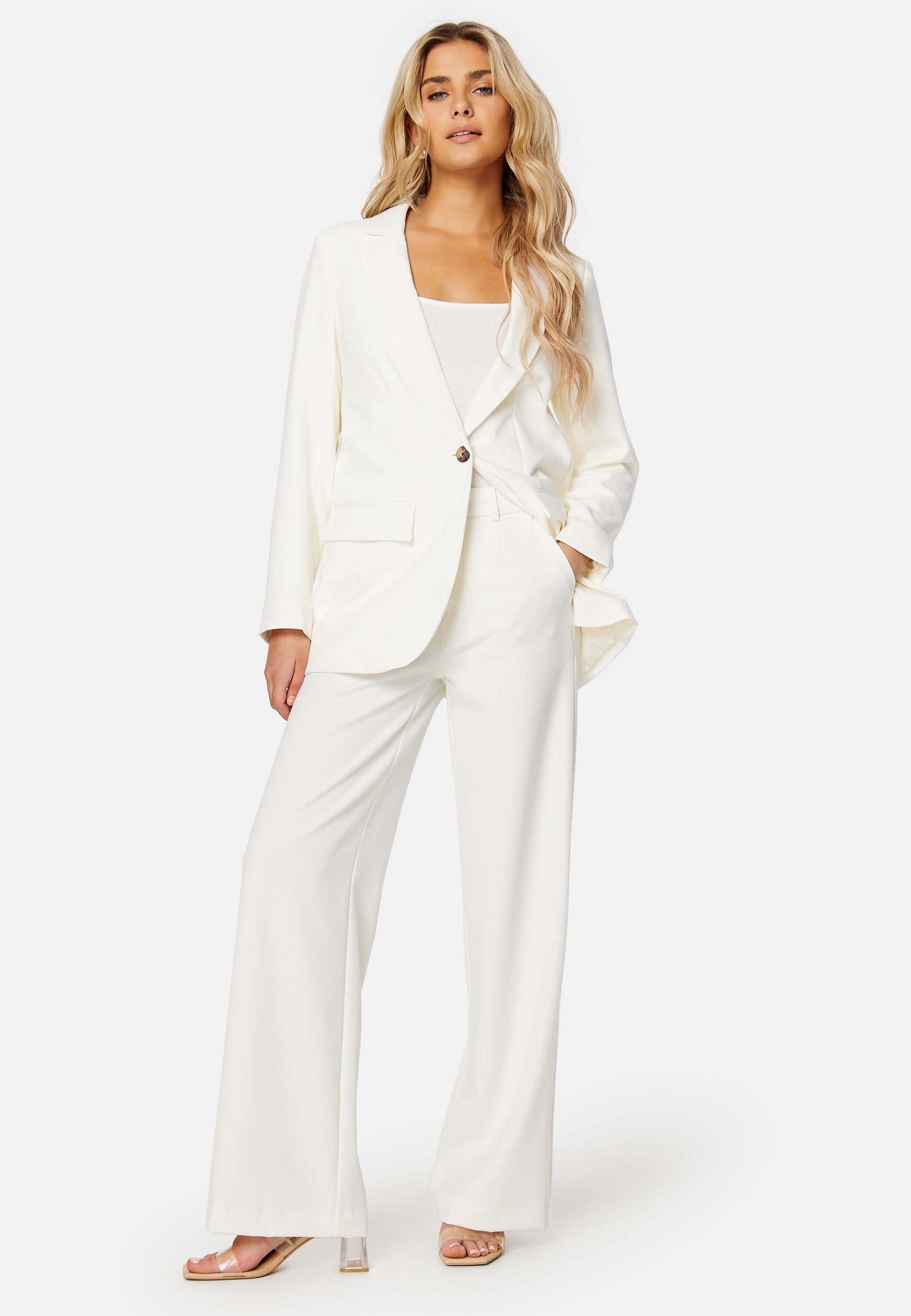- Woven, slightly stretchy quality