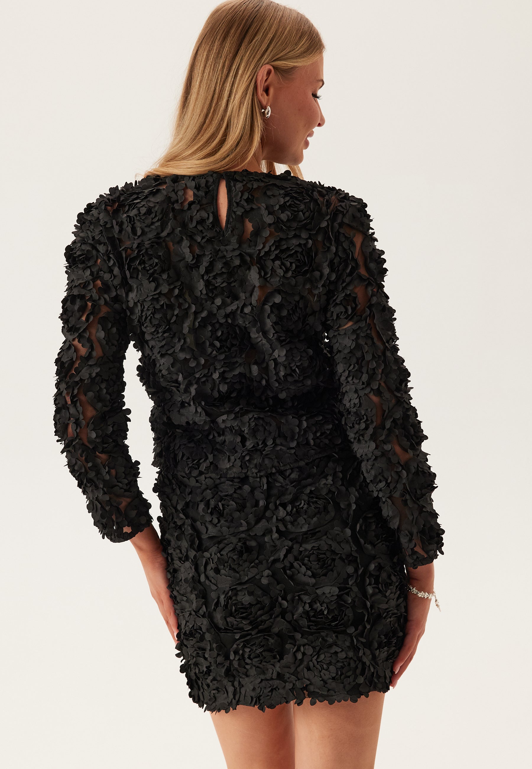 - Lined mesh fabric with 3D flowers