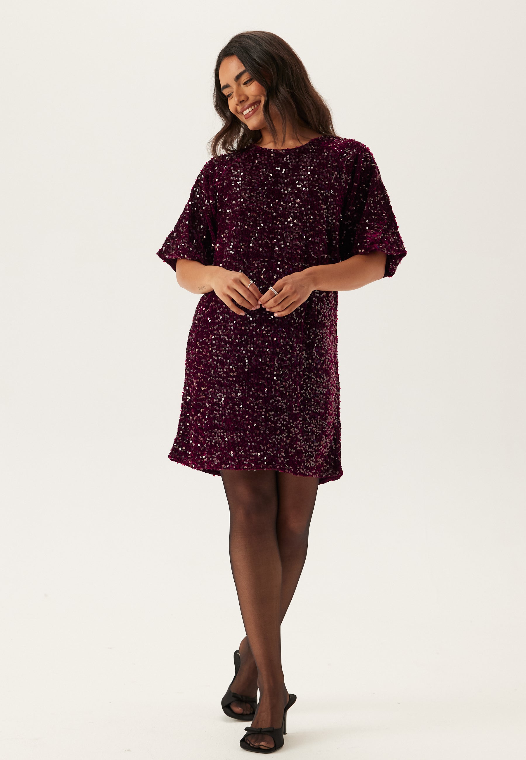 • Short-sleeved sequin dress by Pieces