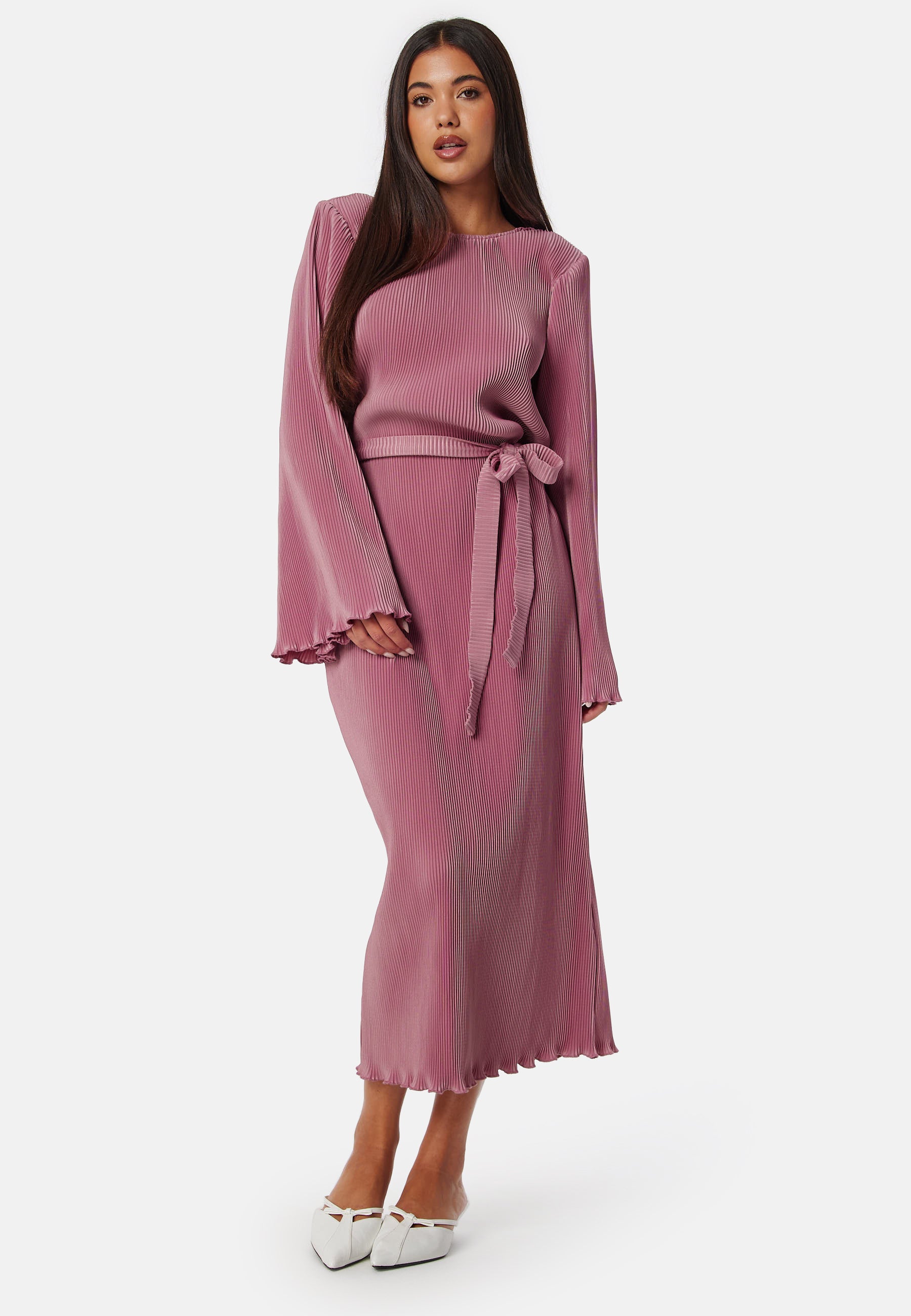 Pleated Tie Midi Dress