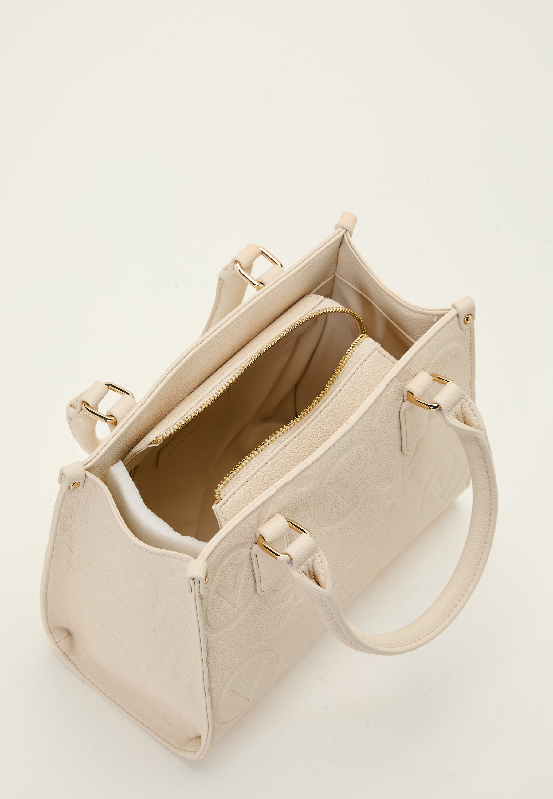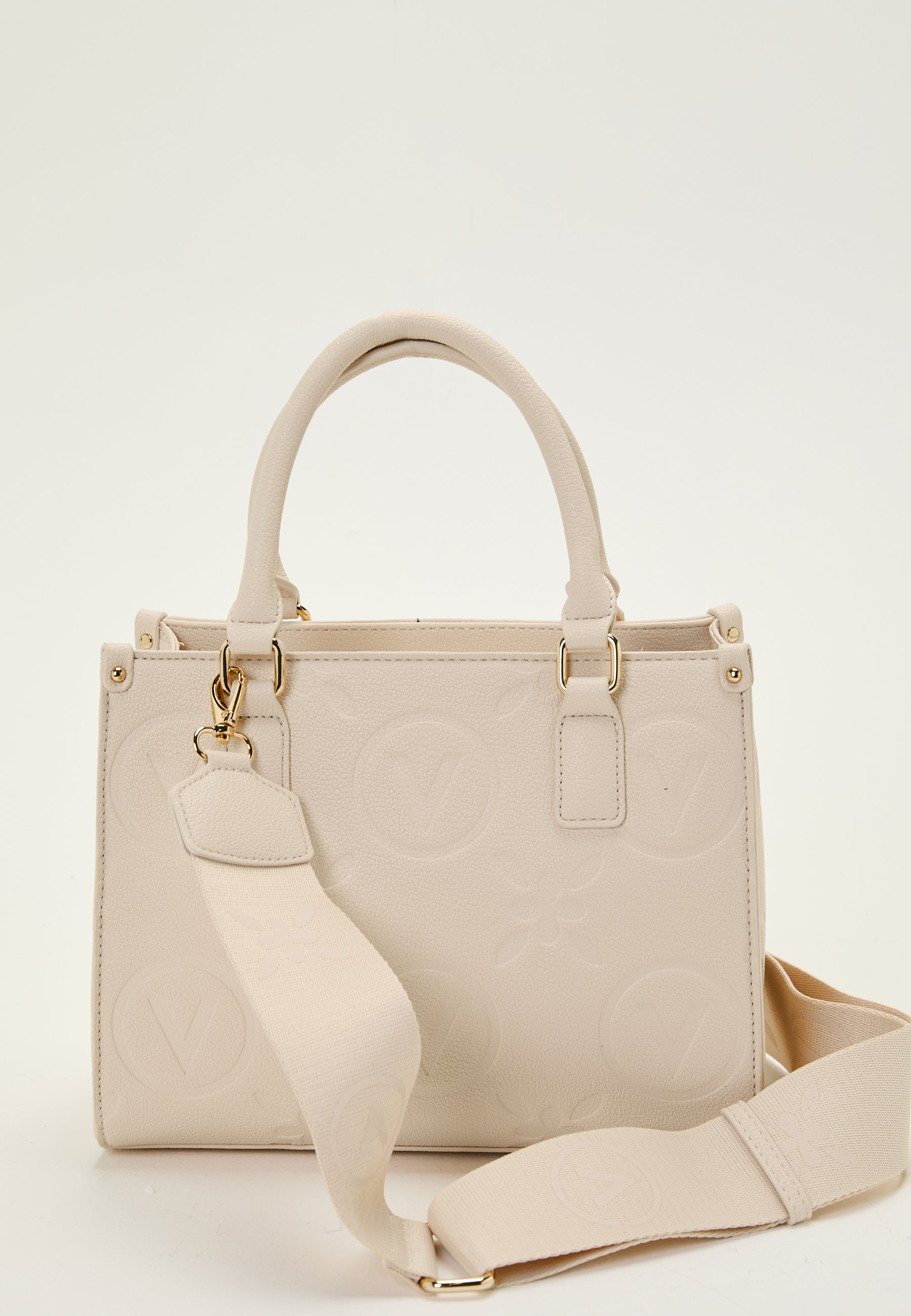 - Imitation leather with gold details and embossed brand logo