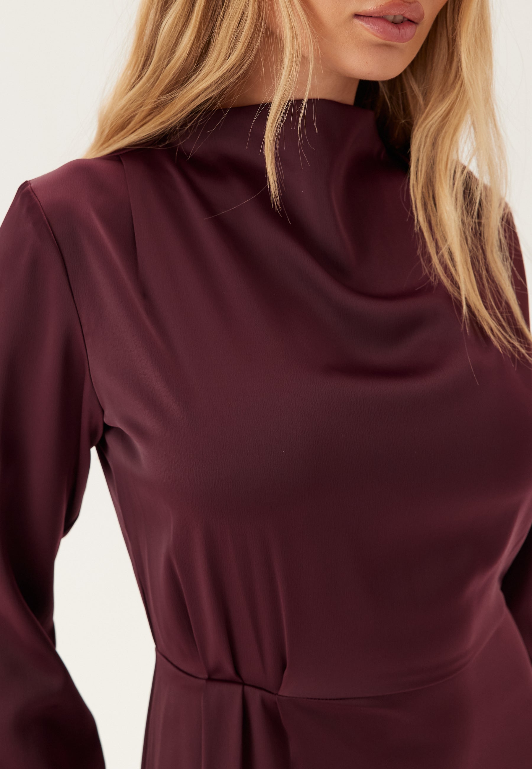Satin Cowl Neck Midi Dress