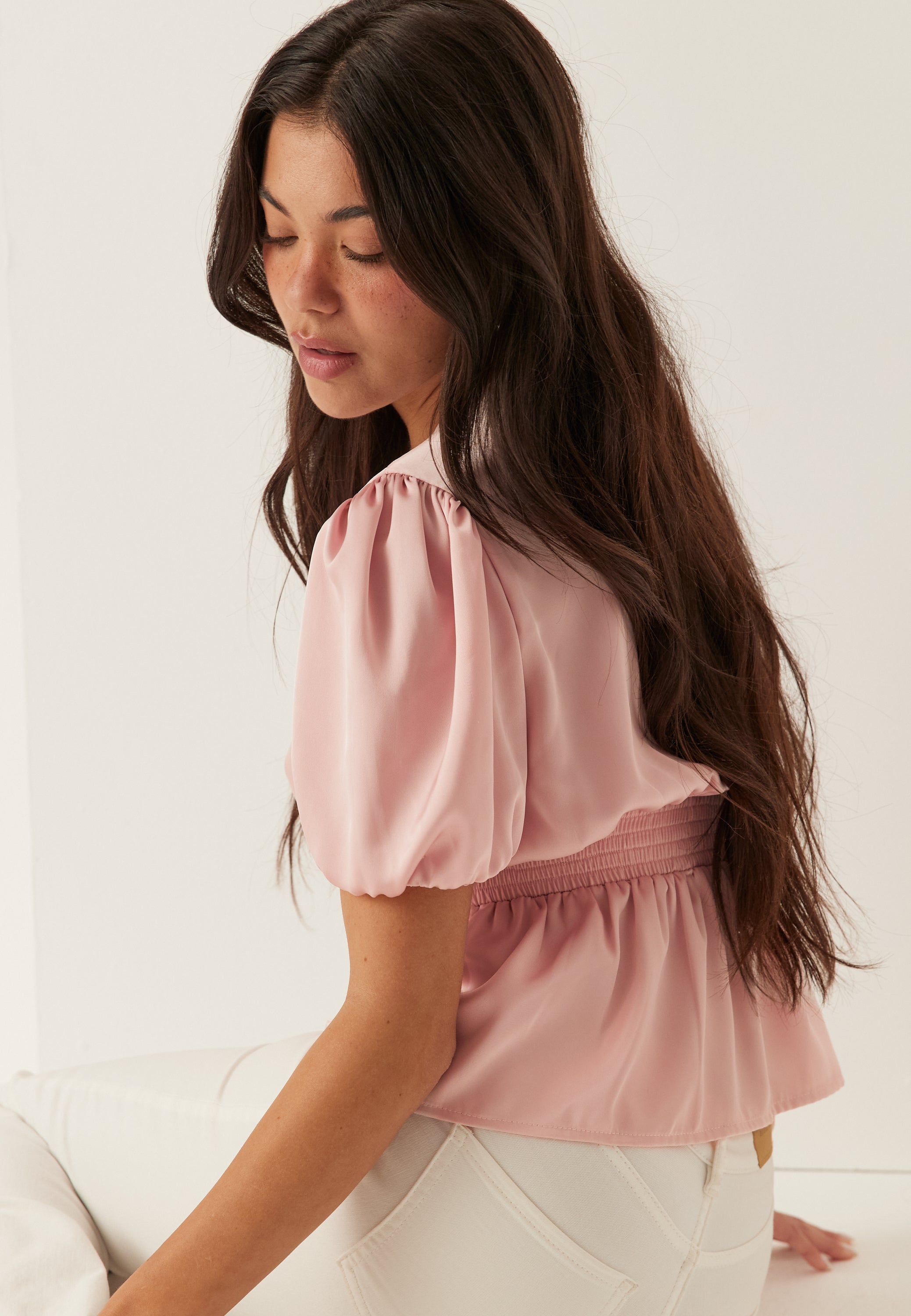 Satin Short Sleeve Blouse