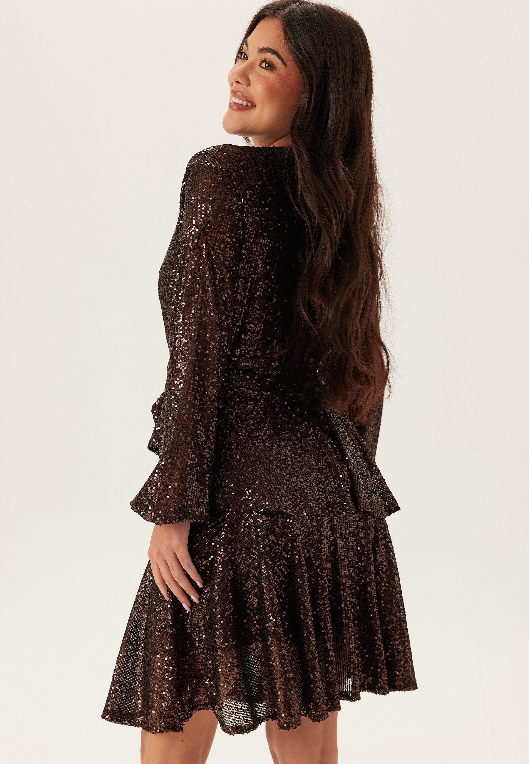 Sequin Deep V Ruffle Skater Dress
