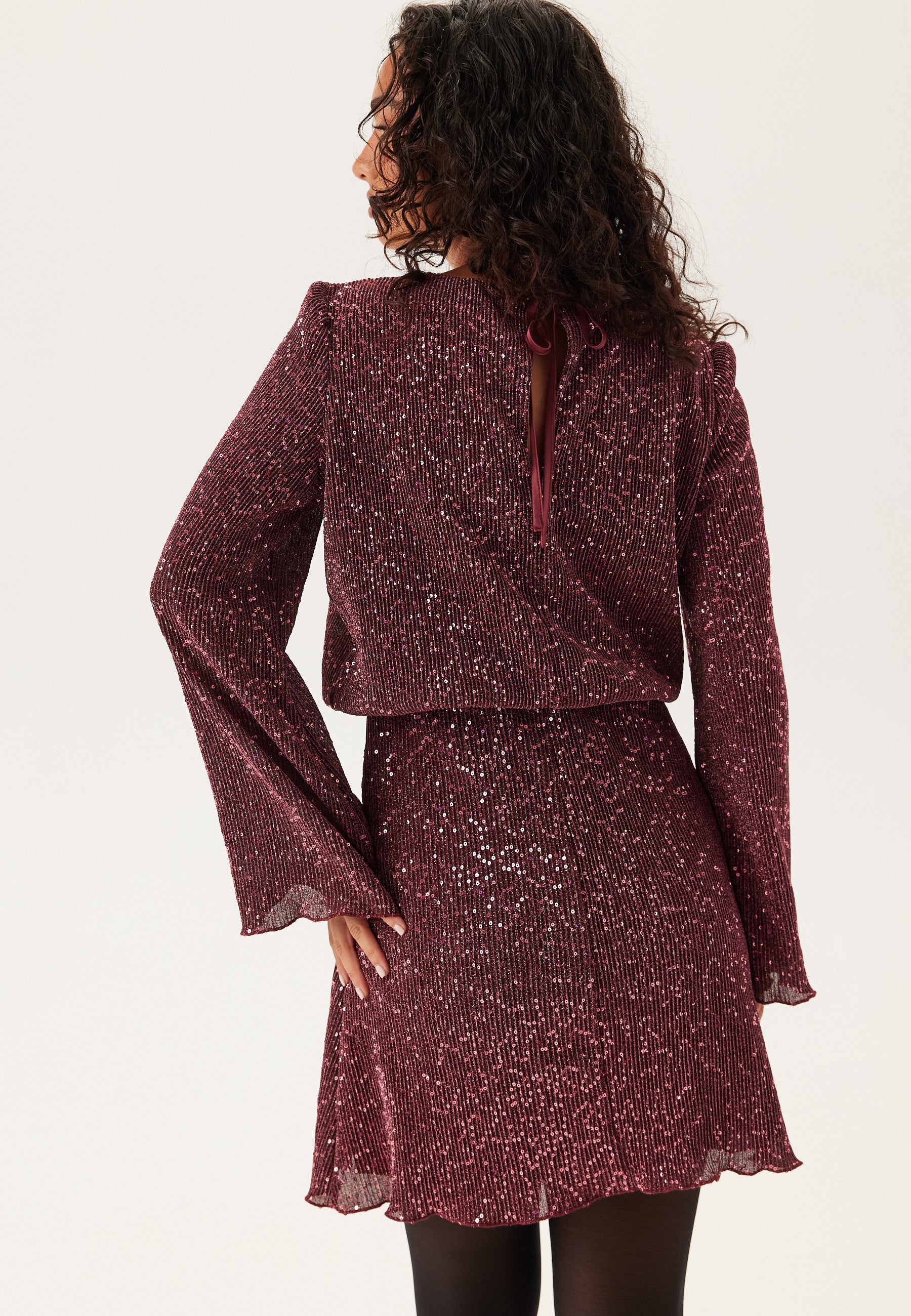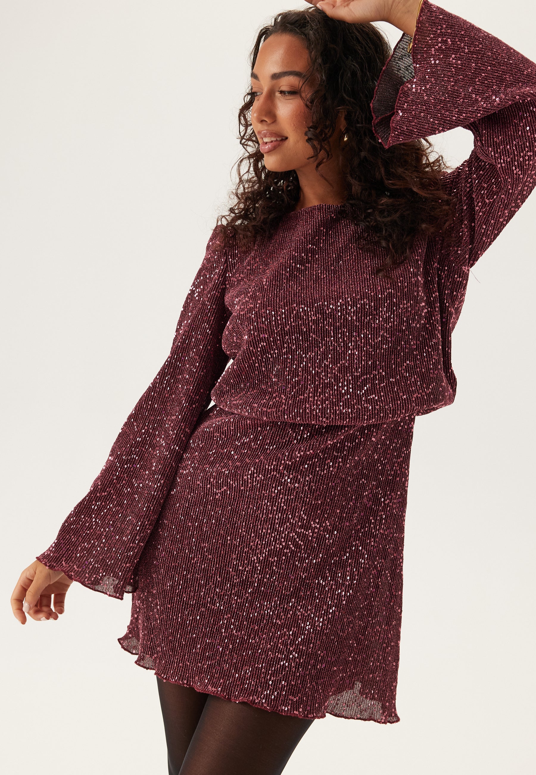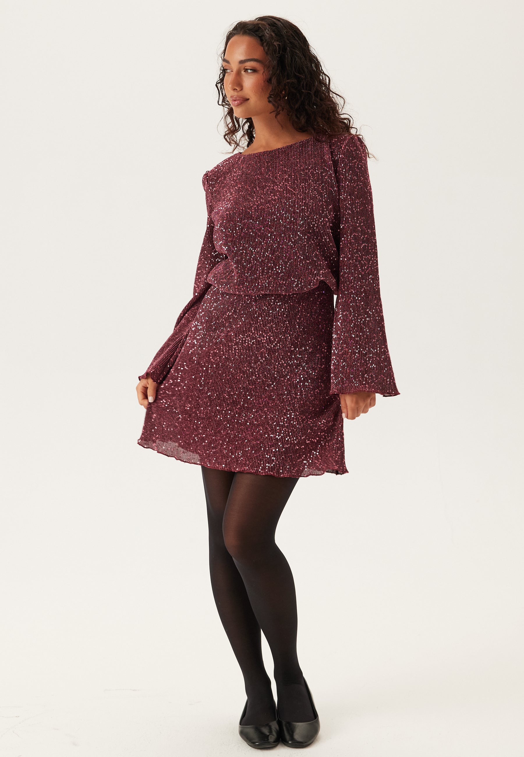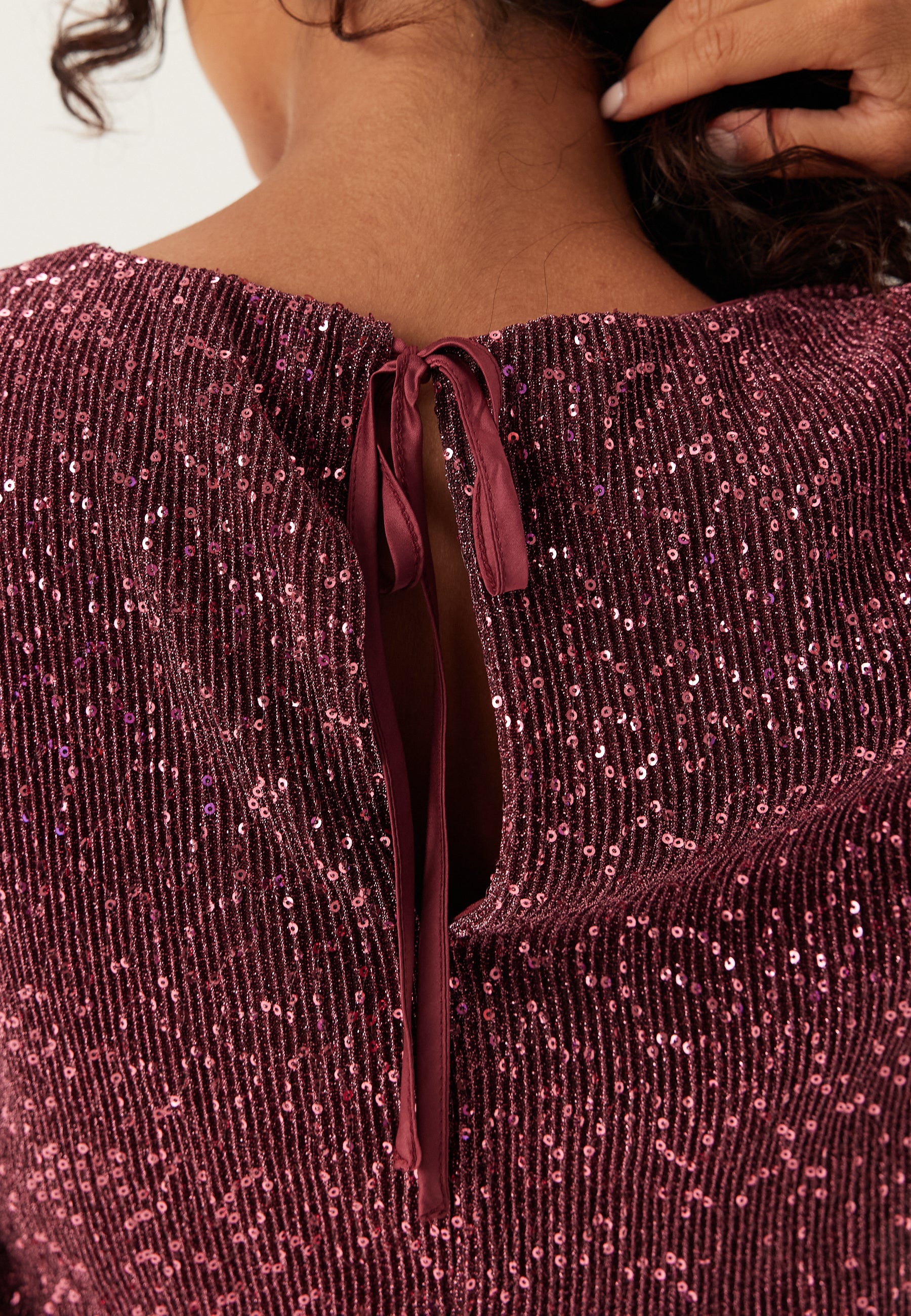 - Stretchy, tricot quality with a sequined outer fabric