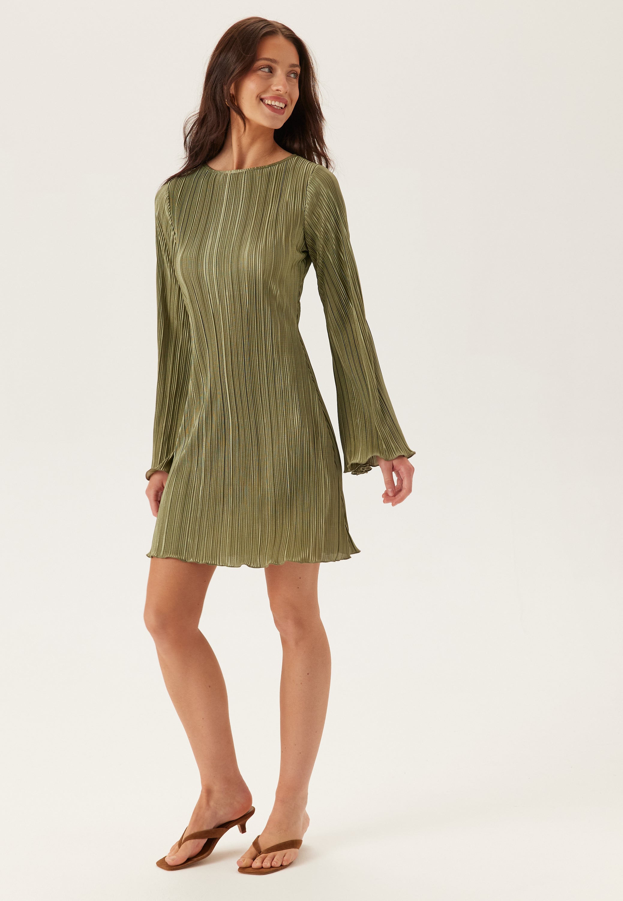 - Flared sleeves