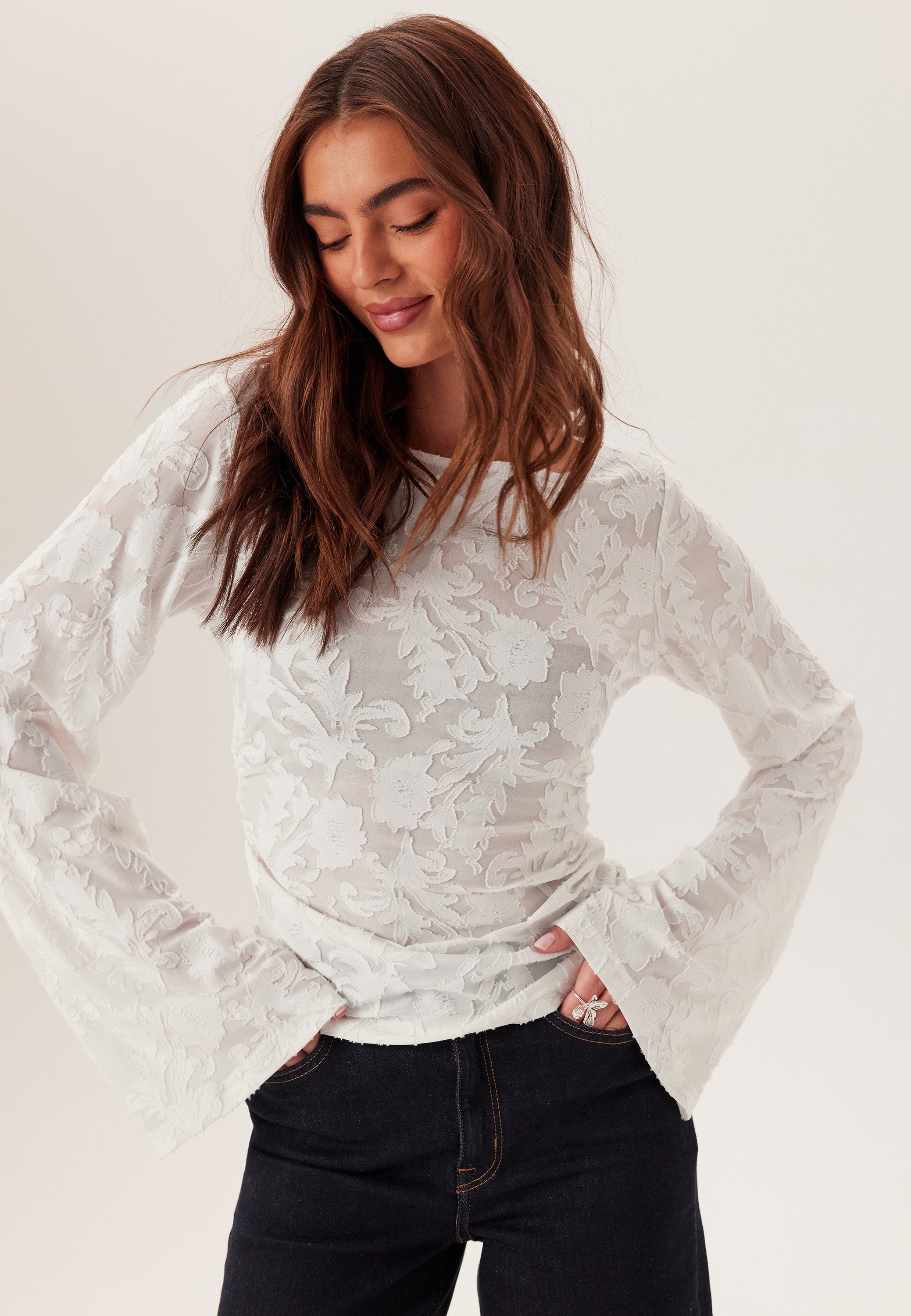 - Gathered side seams at the waist