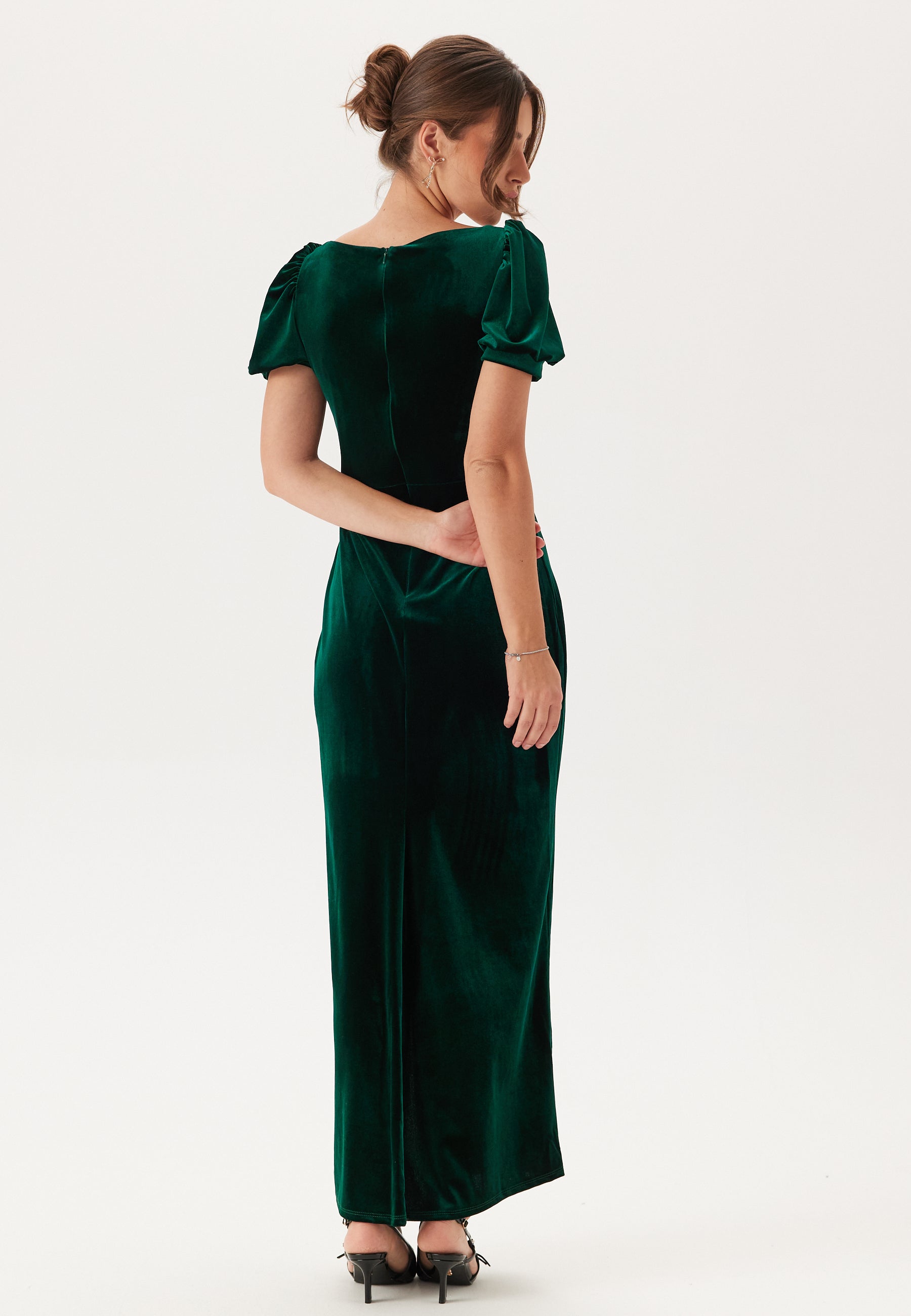Velvet Puff Sleeve Maxi With S