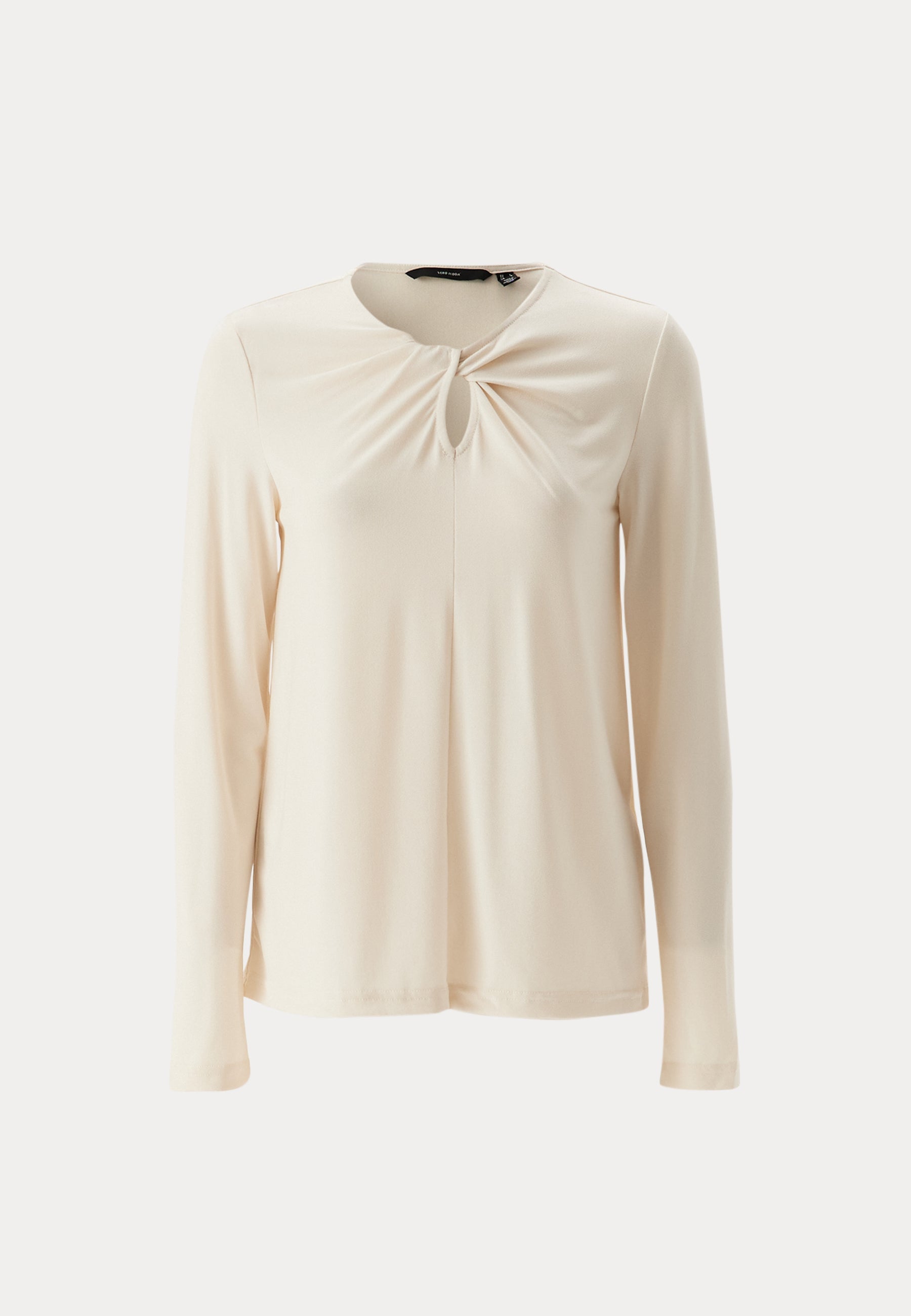 - Rounded neckline with a twist detail.