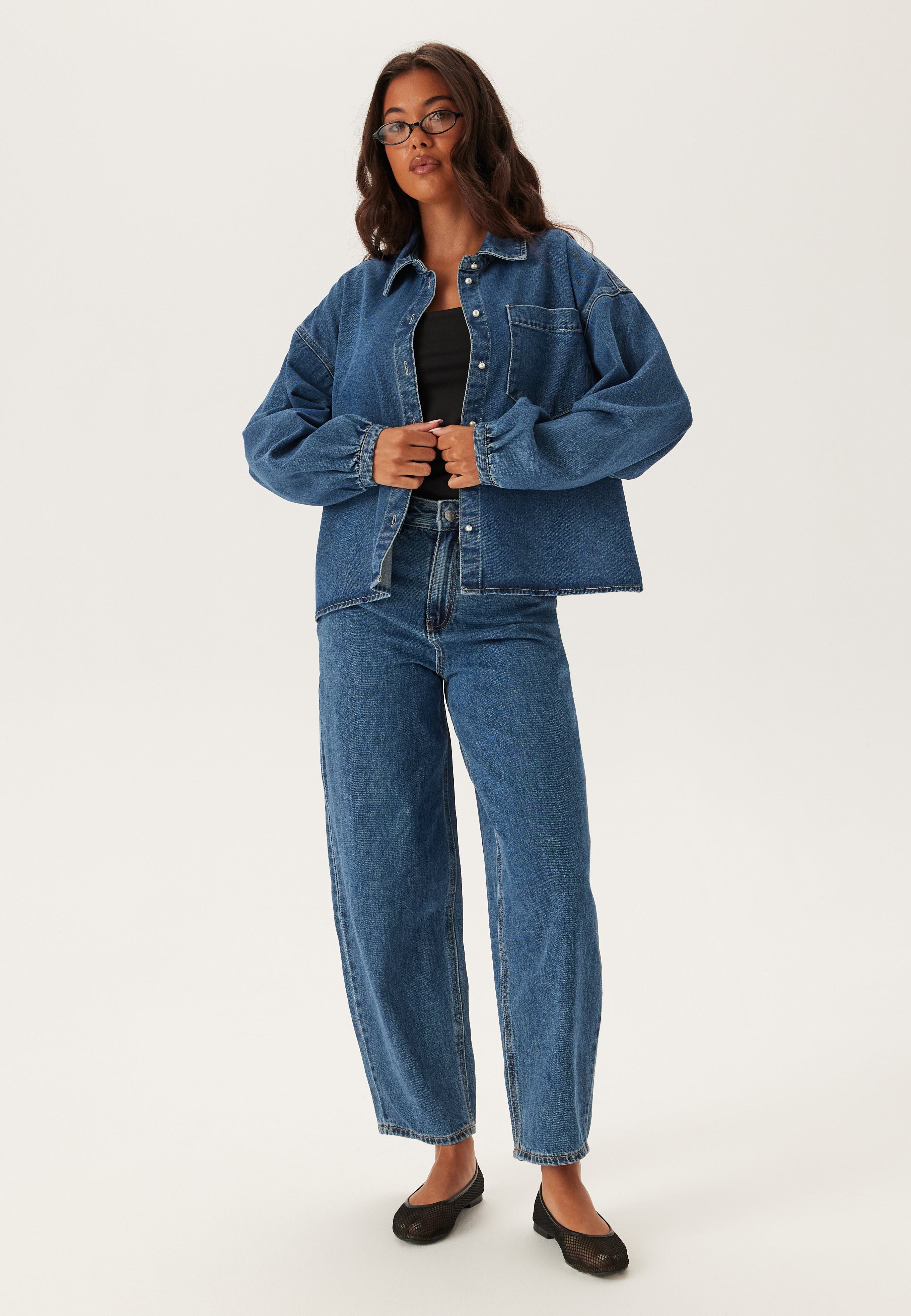 - Loose-fitting style with tapering at the bottom