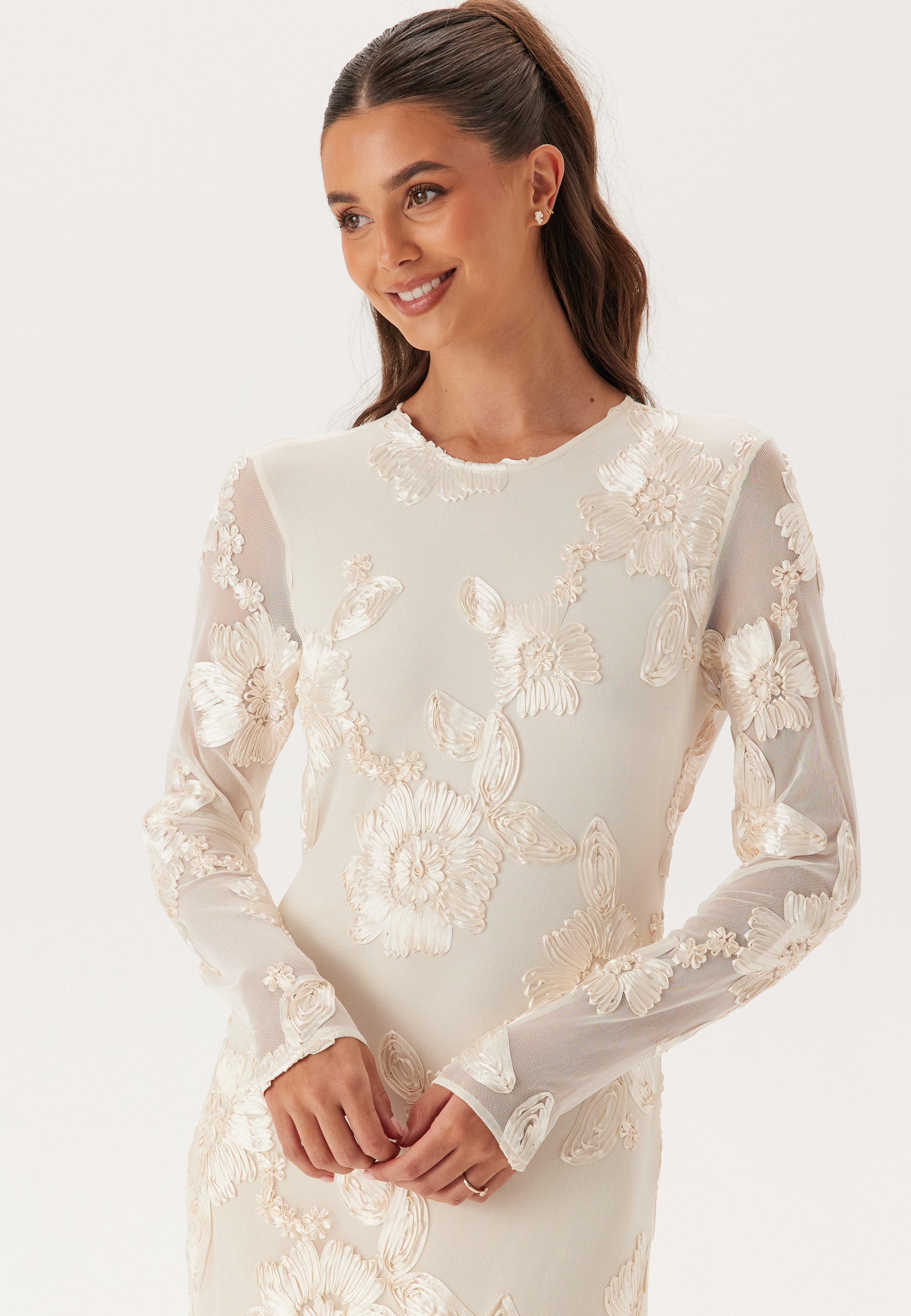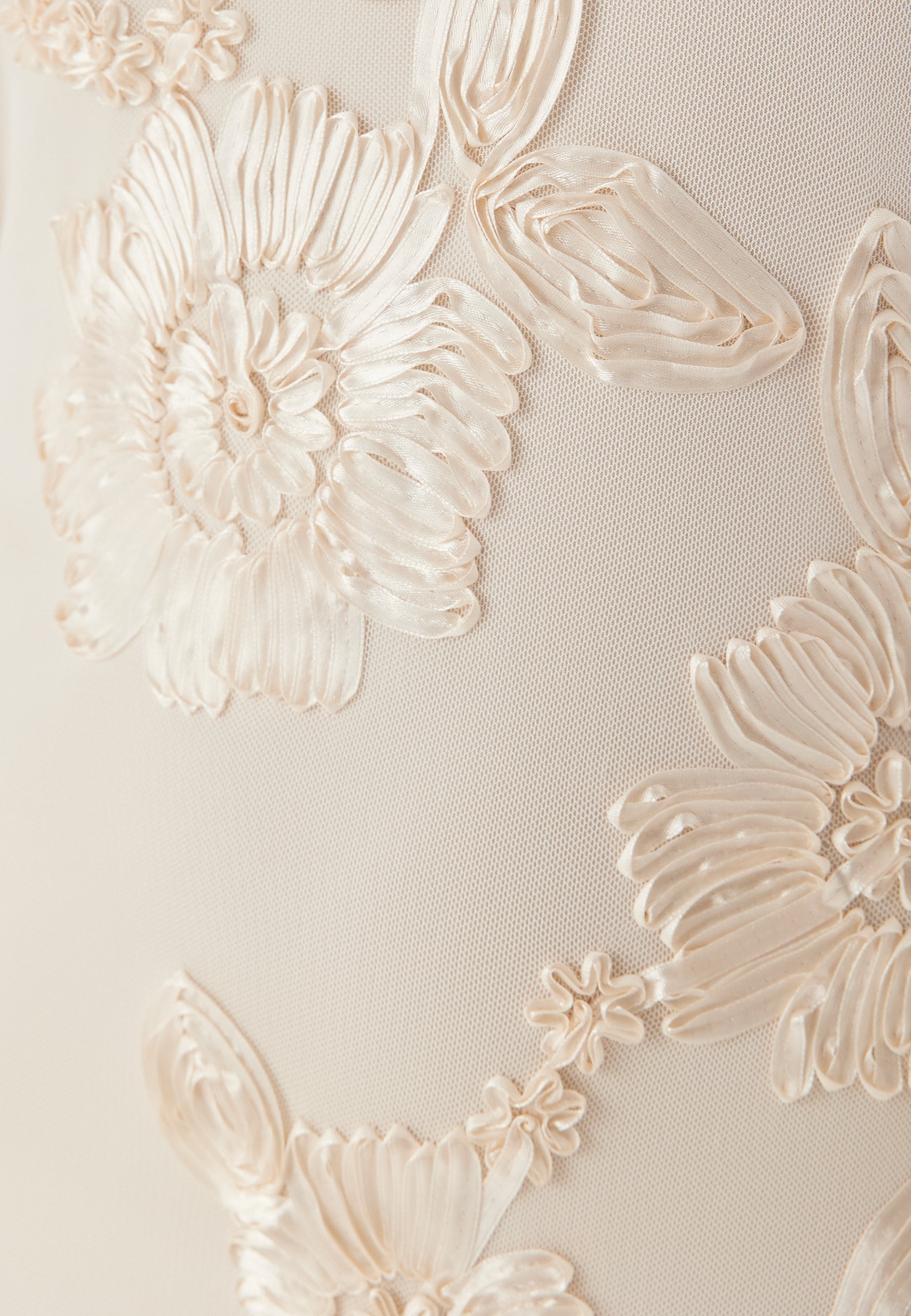 - Mesh fabric with sewn flowers.