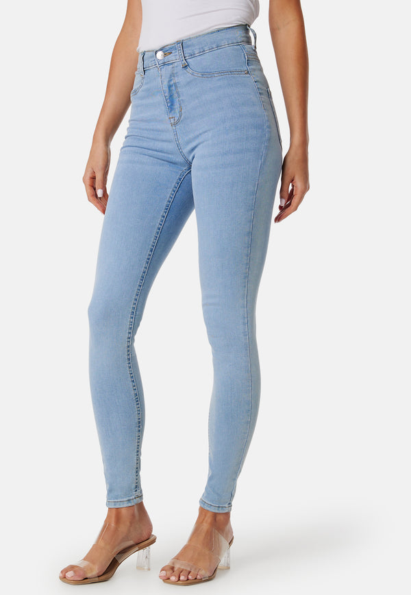 Superstretchy jeans fra BUBBLEROOM med en høj talje.