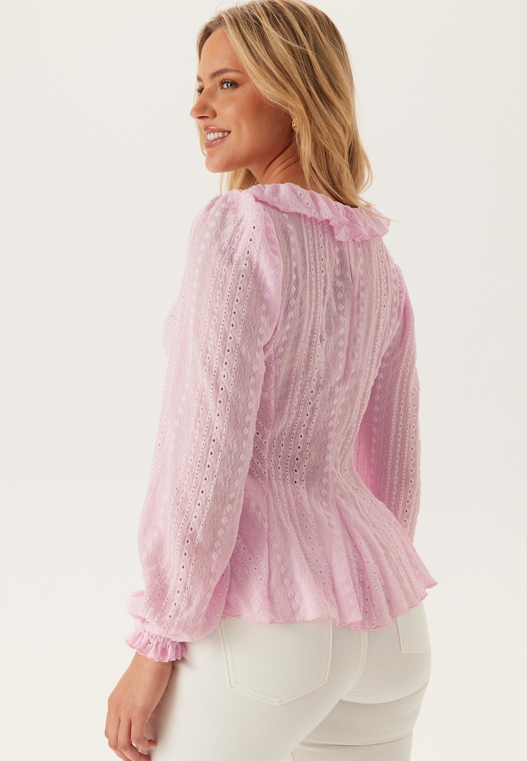- Pufærmer med volant på ærmeafslutningerne