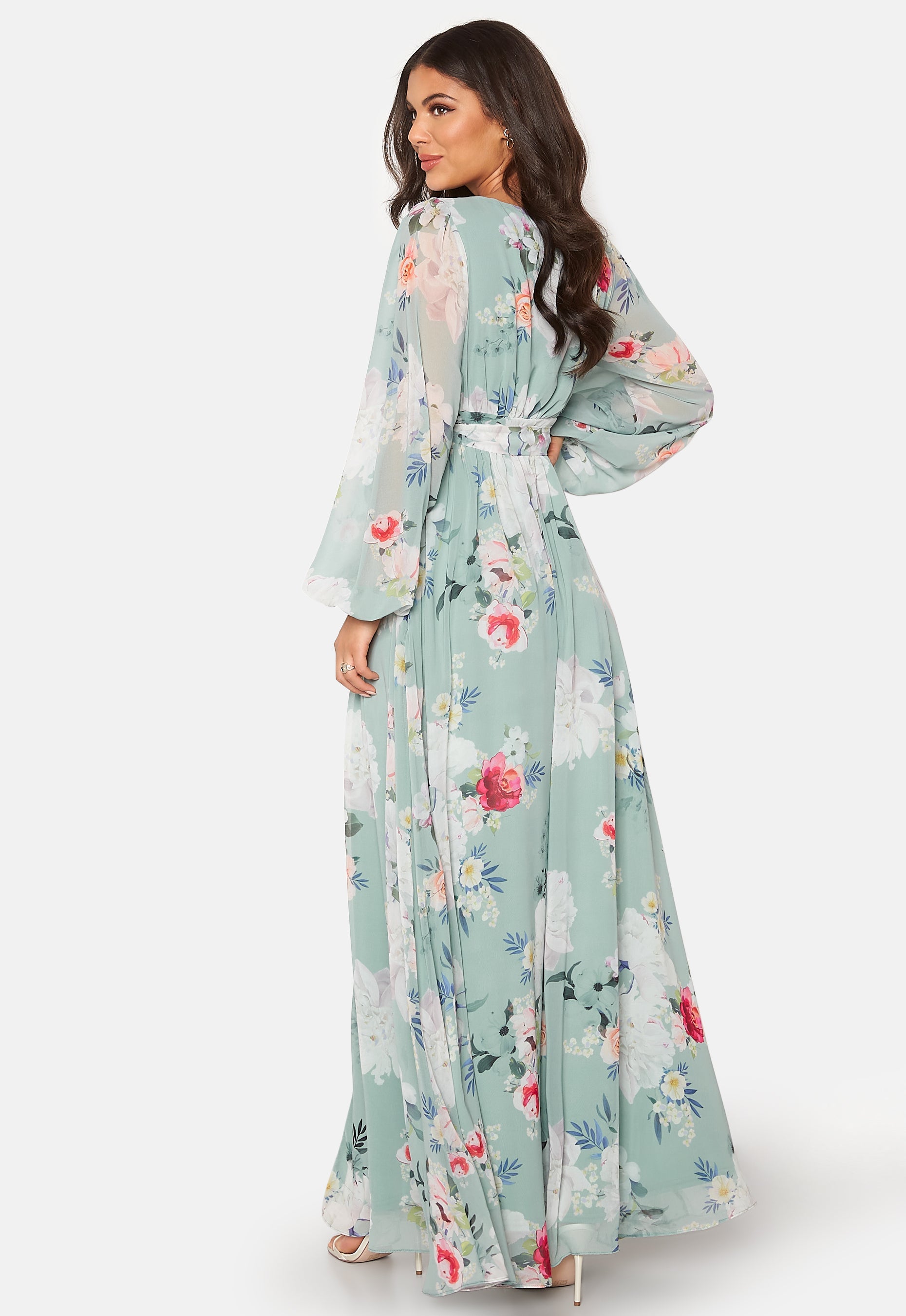 Floral Long Sleeve Chiffon Maxi Dress