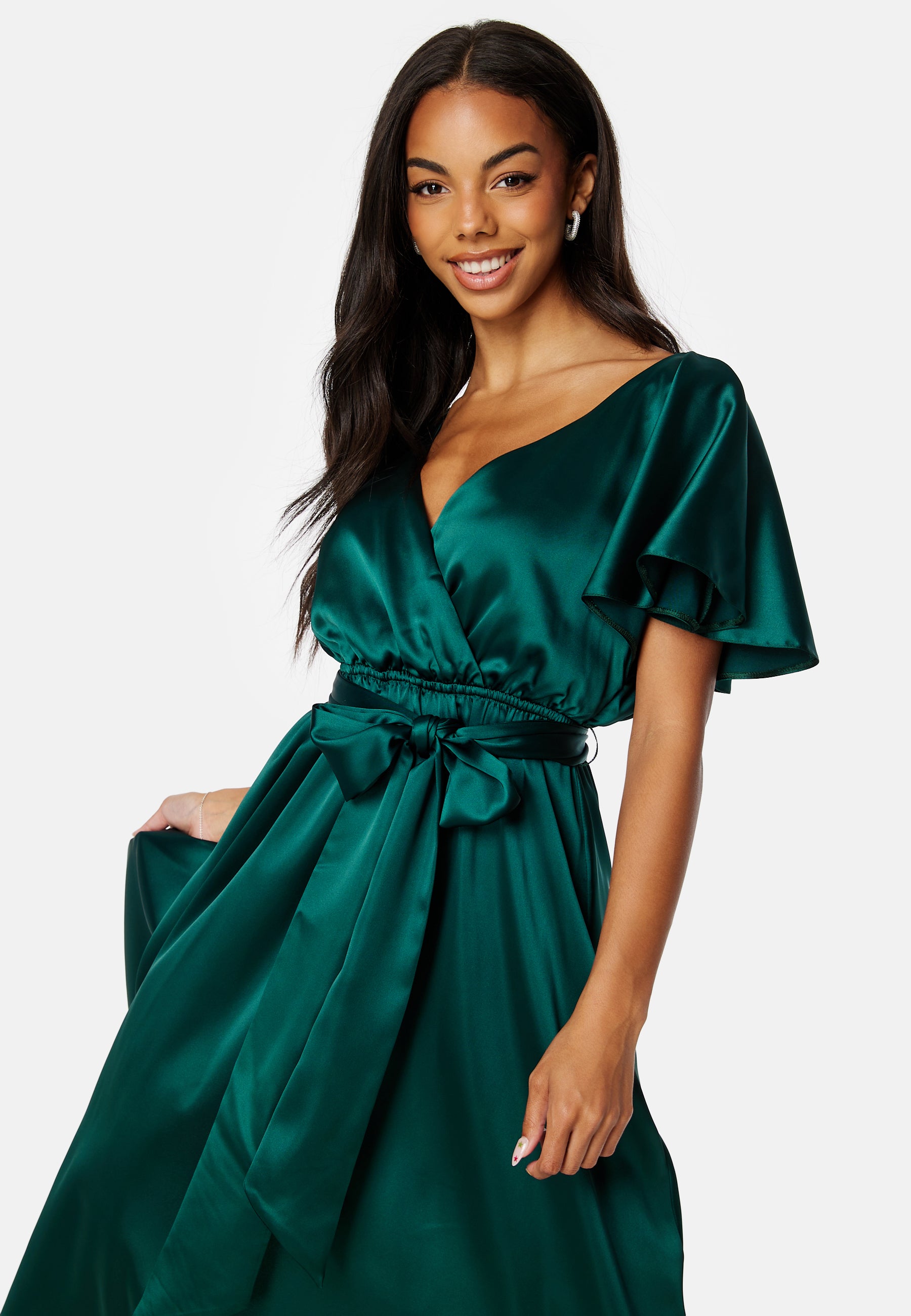 Flutter Sleeve Satin Midi Dress
