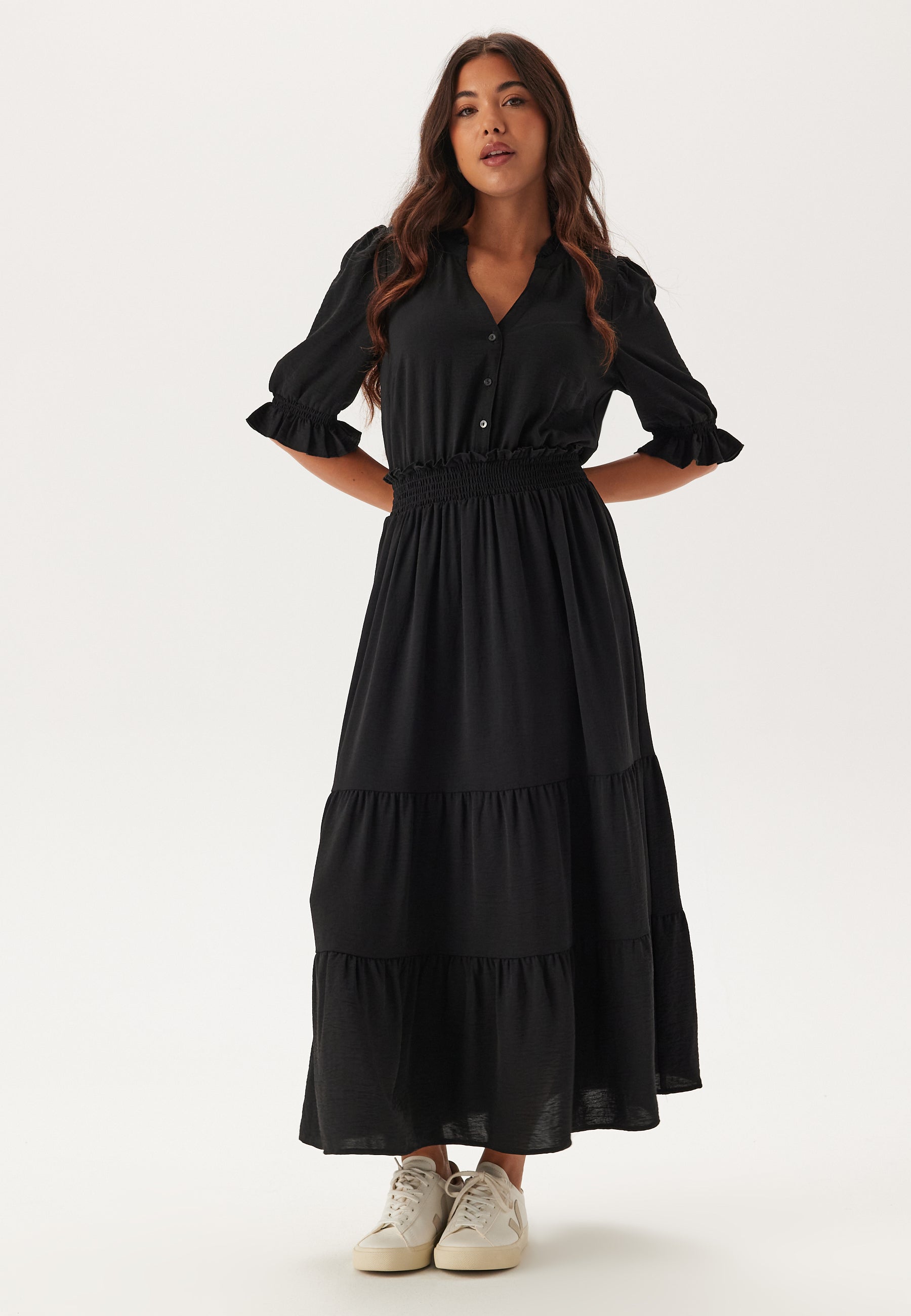 Frill Neck Tiered Maxi Dress