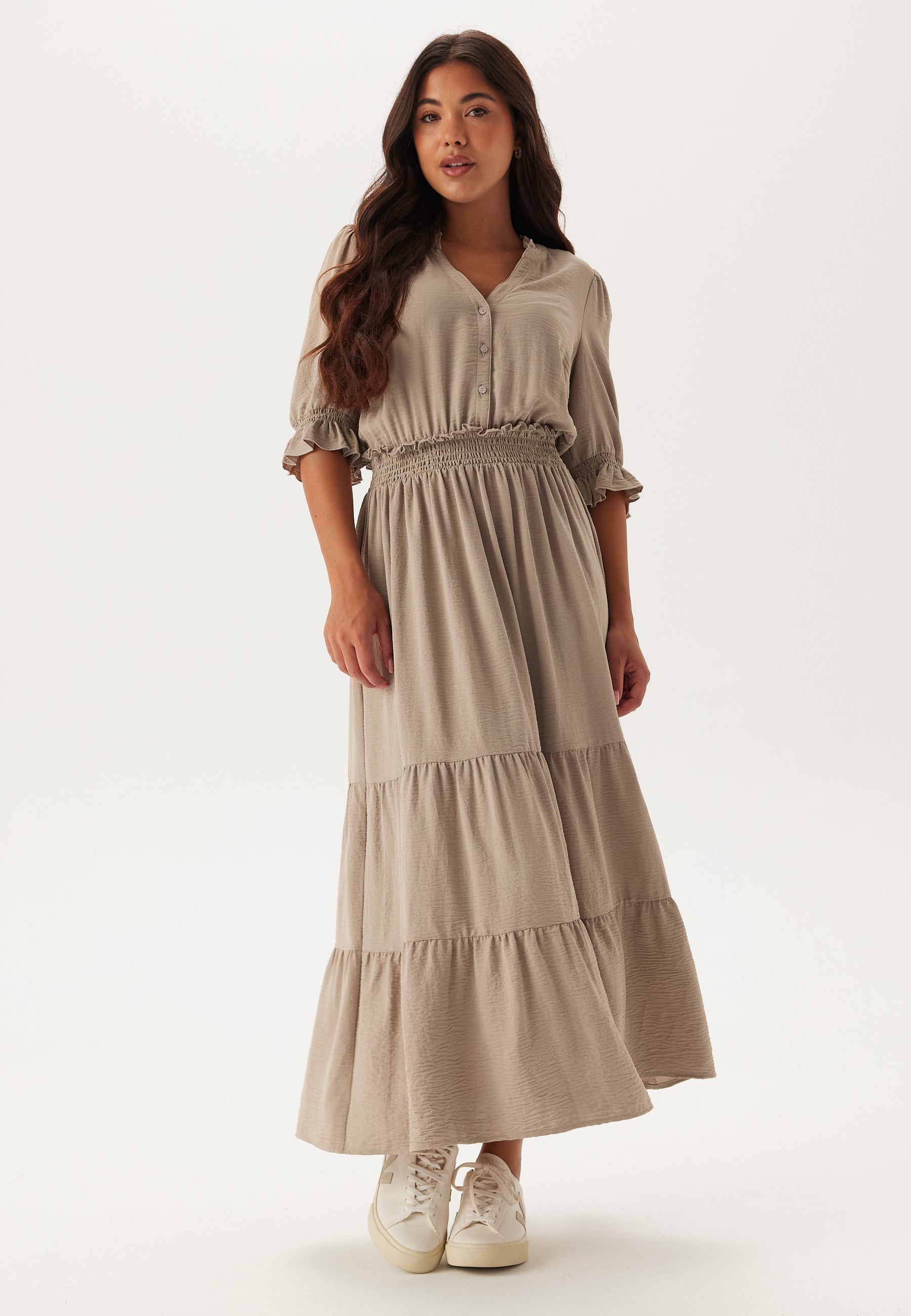Frill Neck Tiered Maxi Dress