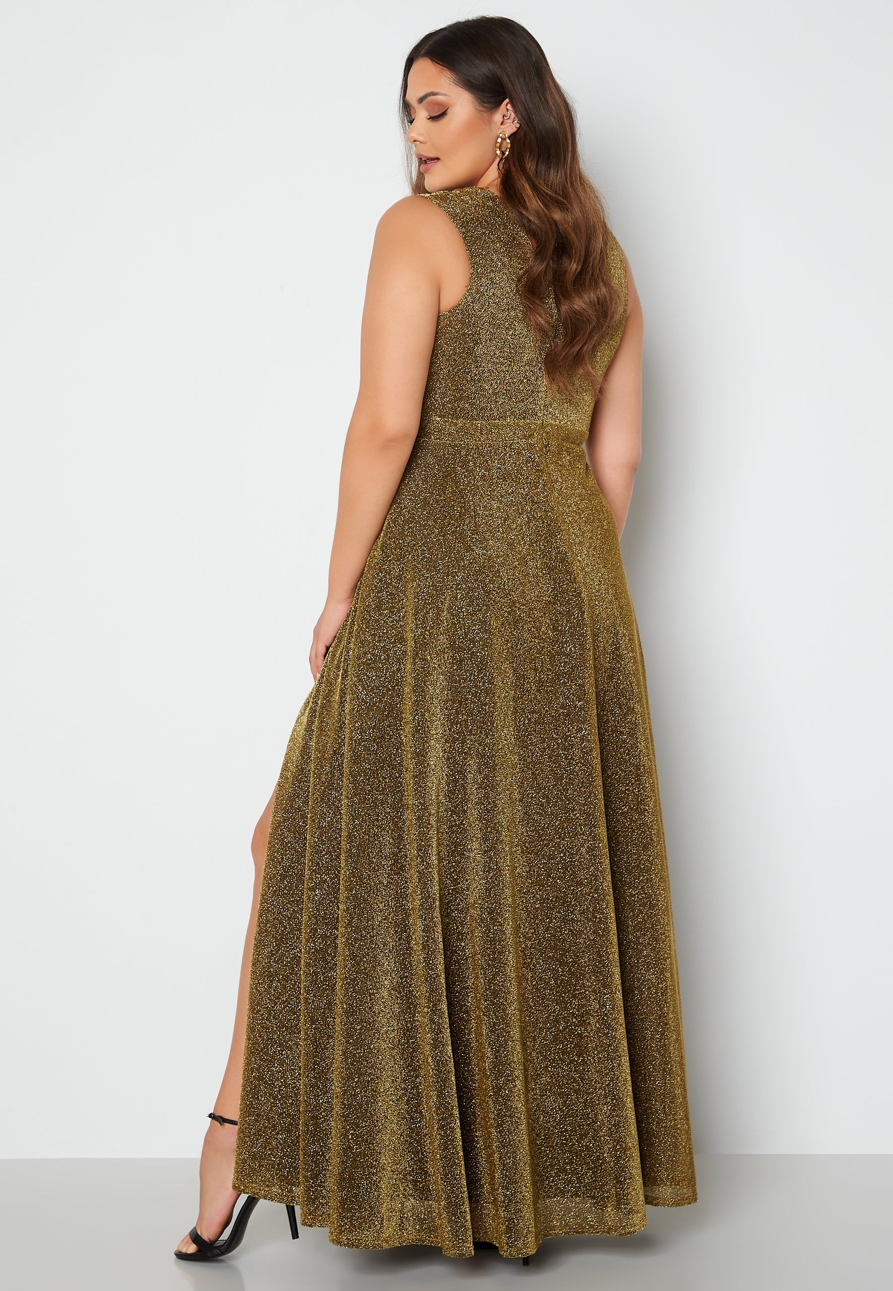 Glitter Wrap Front Maxi Curve Dress With Split