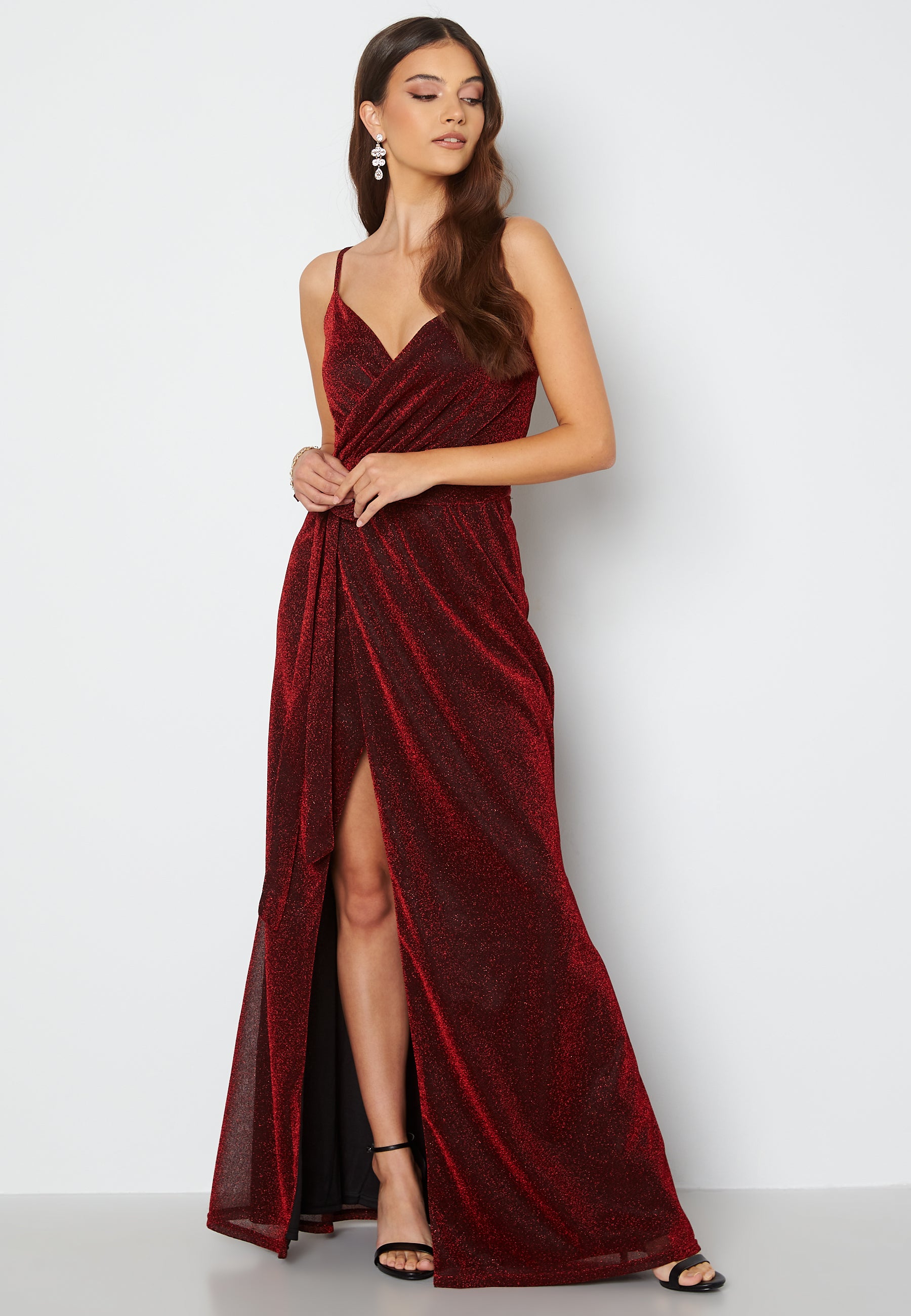 Glitter Wrap Front Maxi Dress