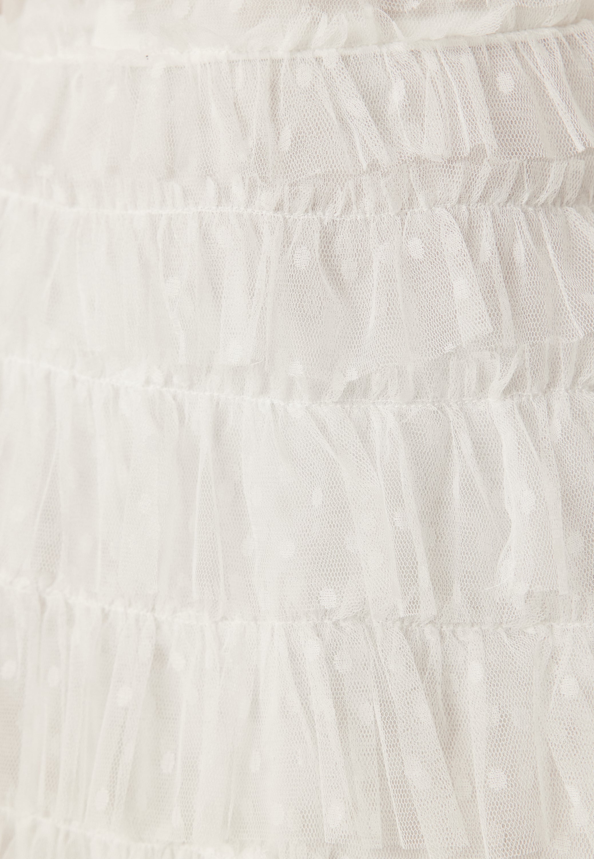 - Materiale: Prikket tyl med flæser over det hele