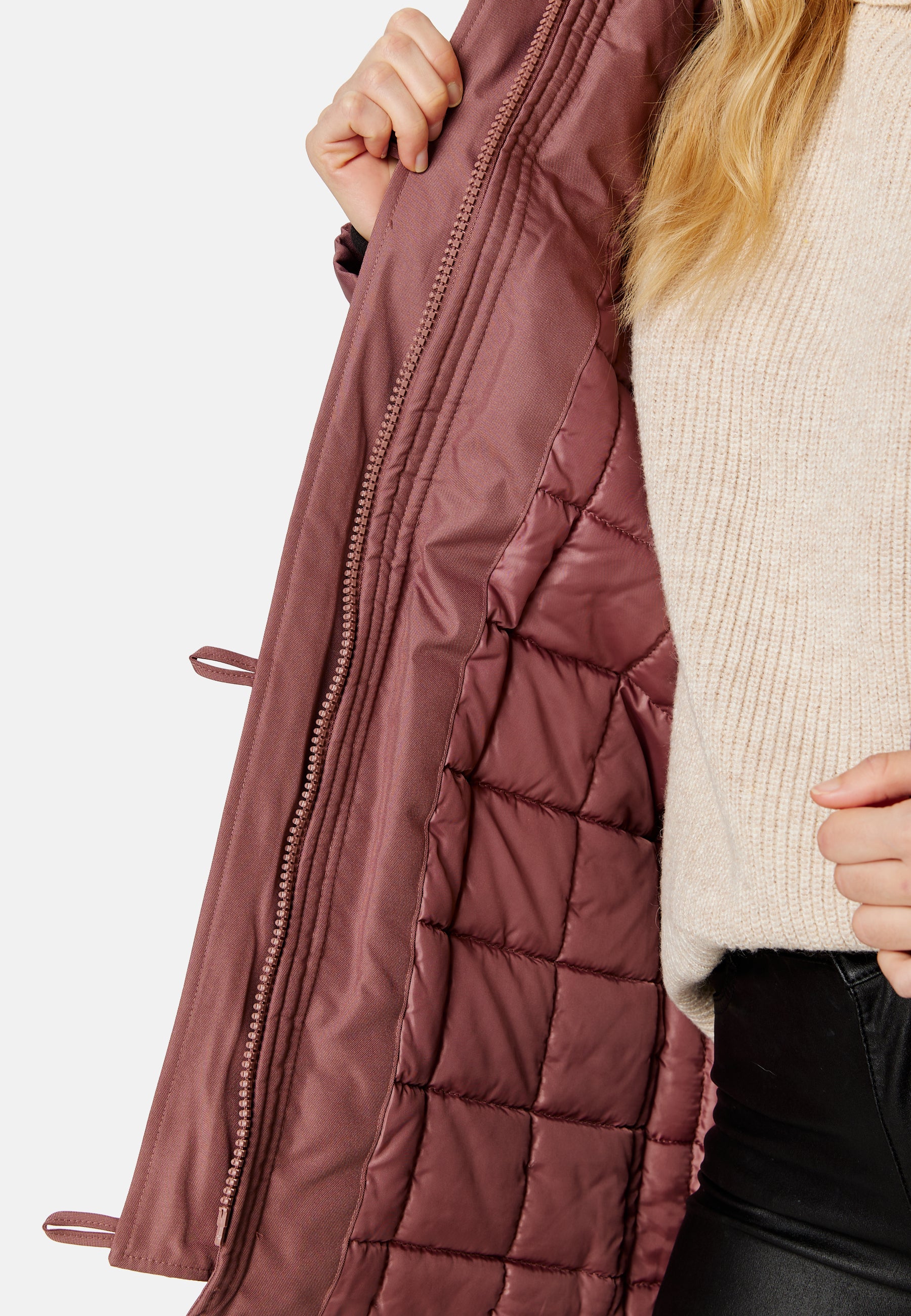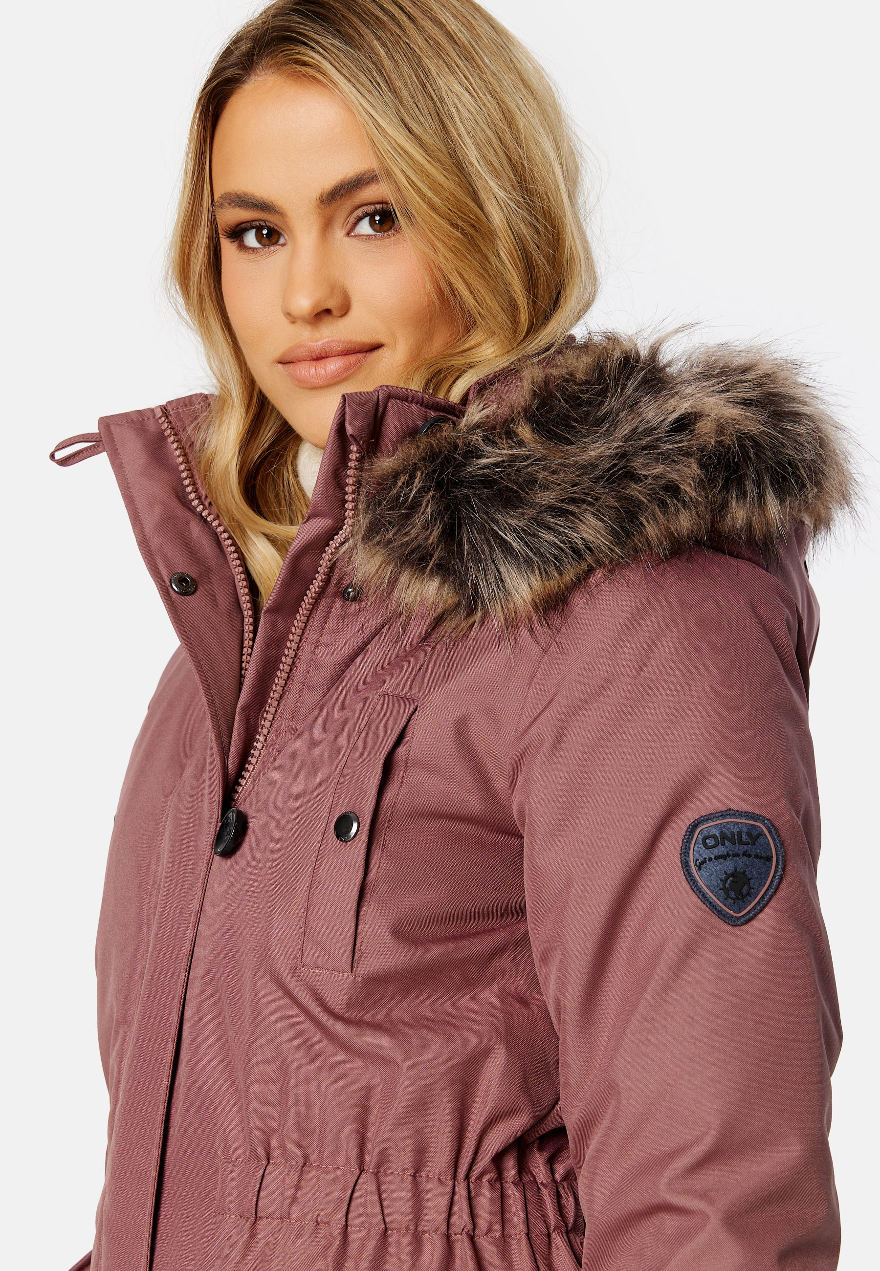 - Aftagelig kunstpelskant ved hætten