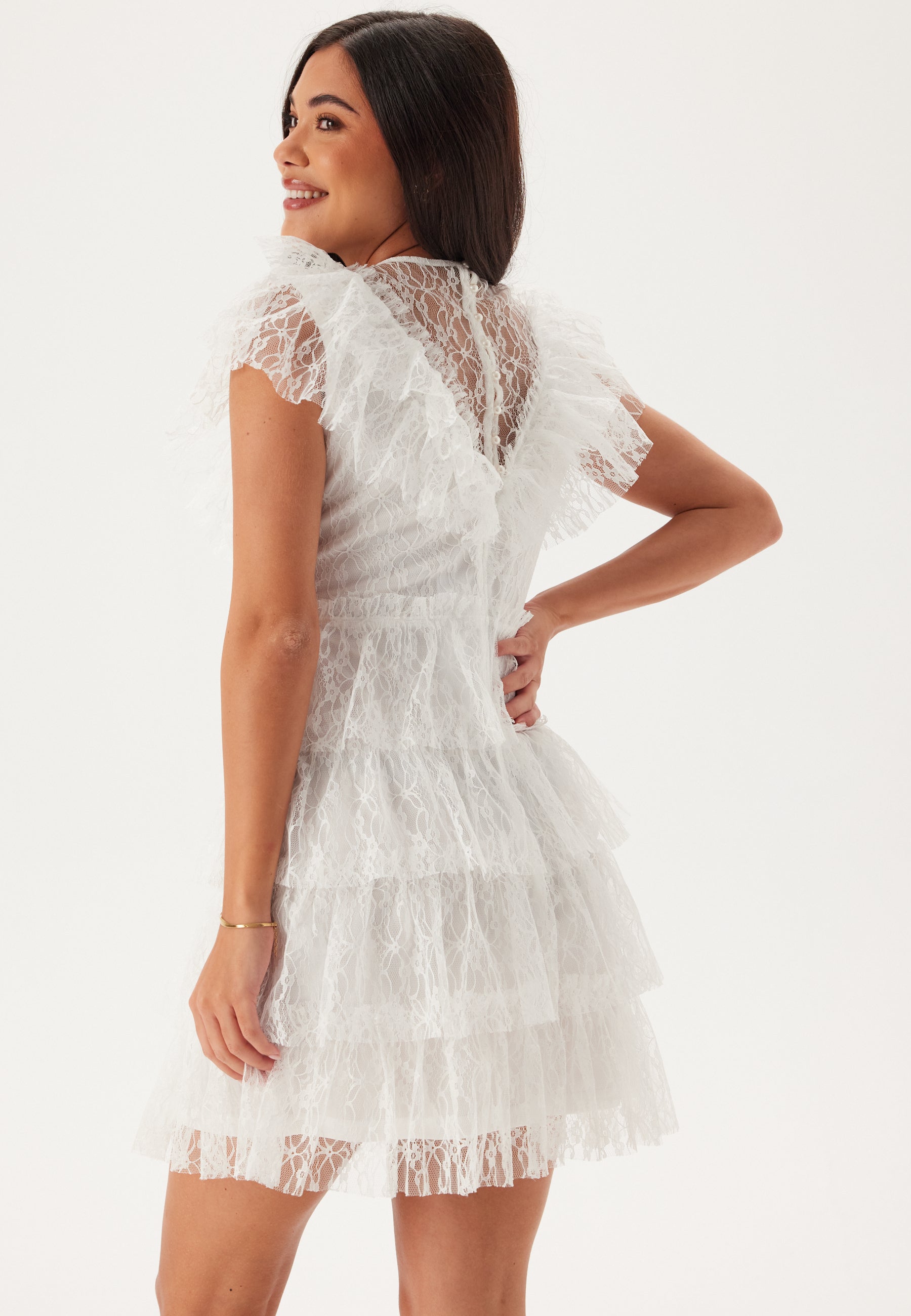 - Halsudskæring med volant.