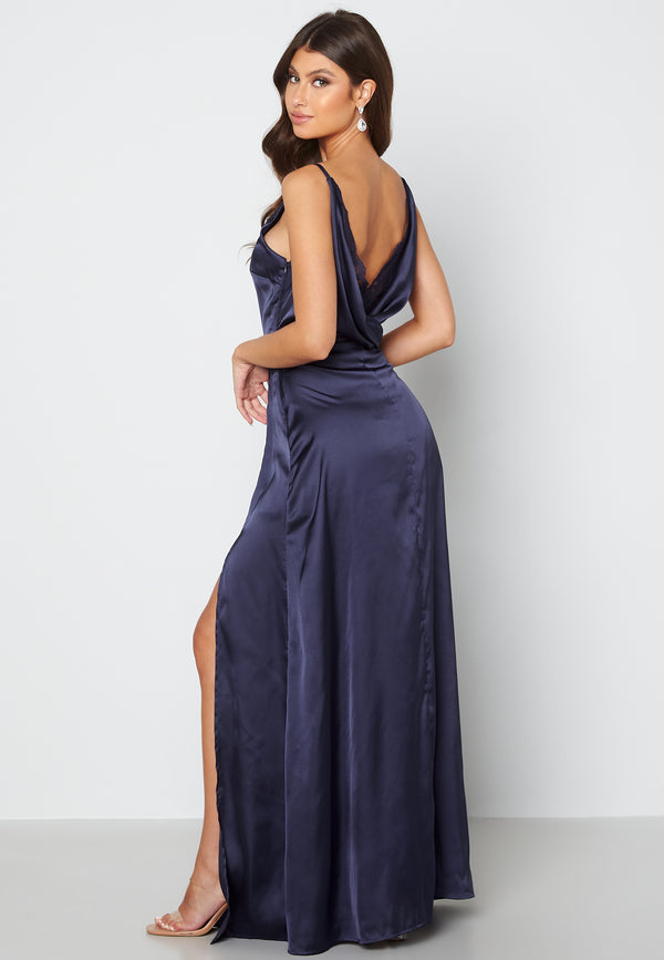 • Elegant kjole fra Bubbleroom Occasion med satin, åben ryg og feminin drapering.