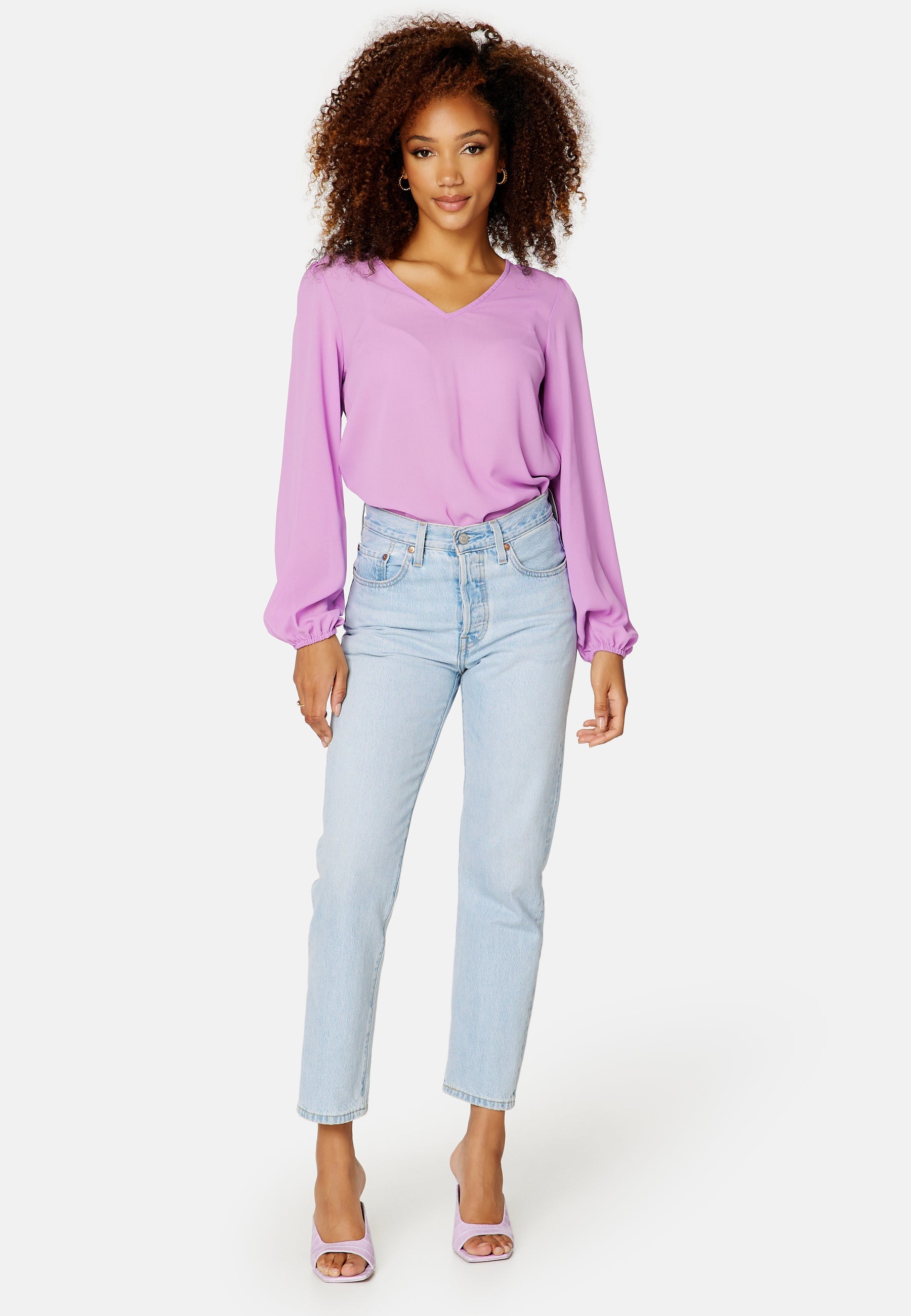 - Ballonærme med en elastik på ærmeafslutningerne.