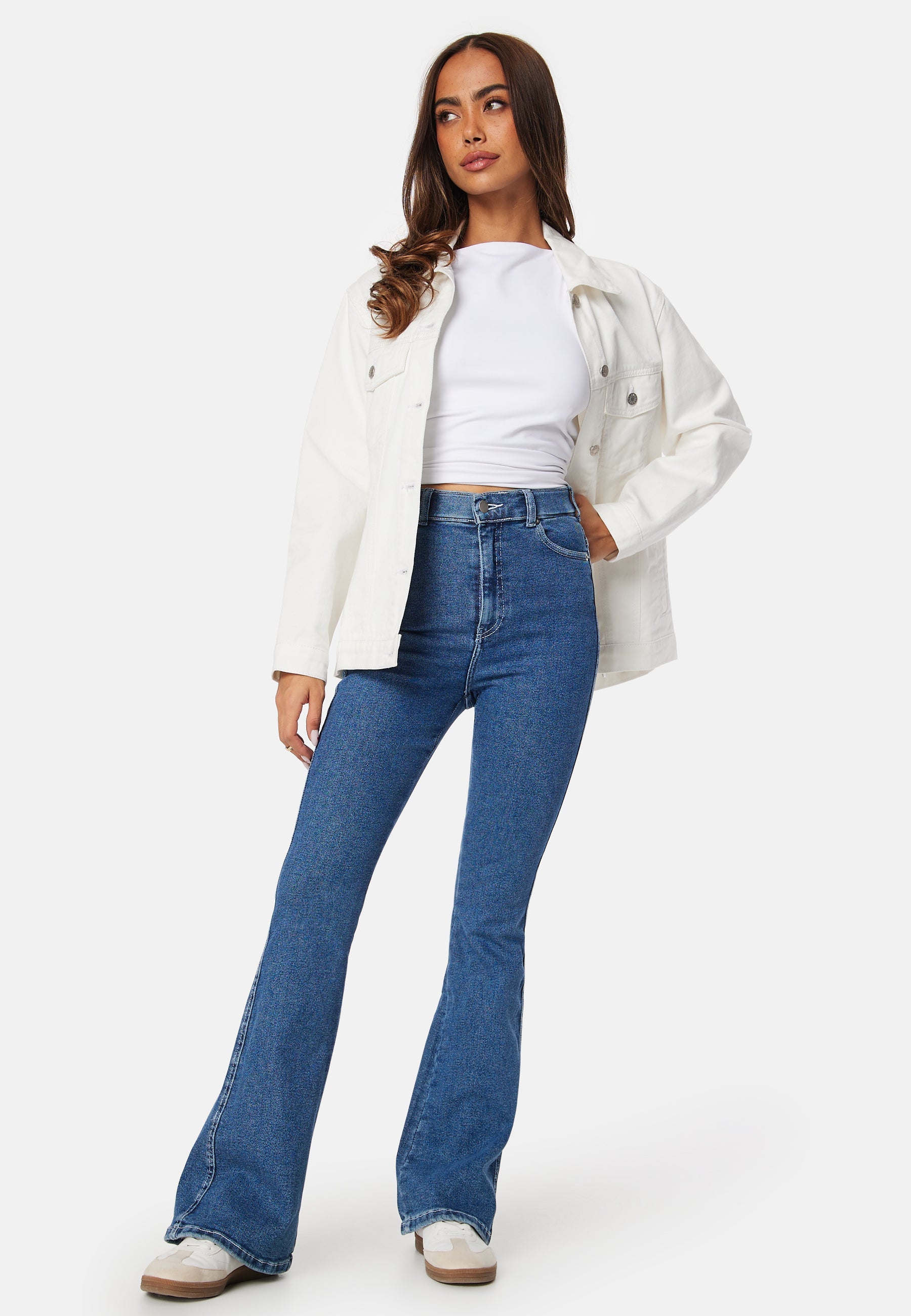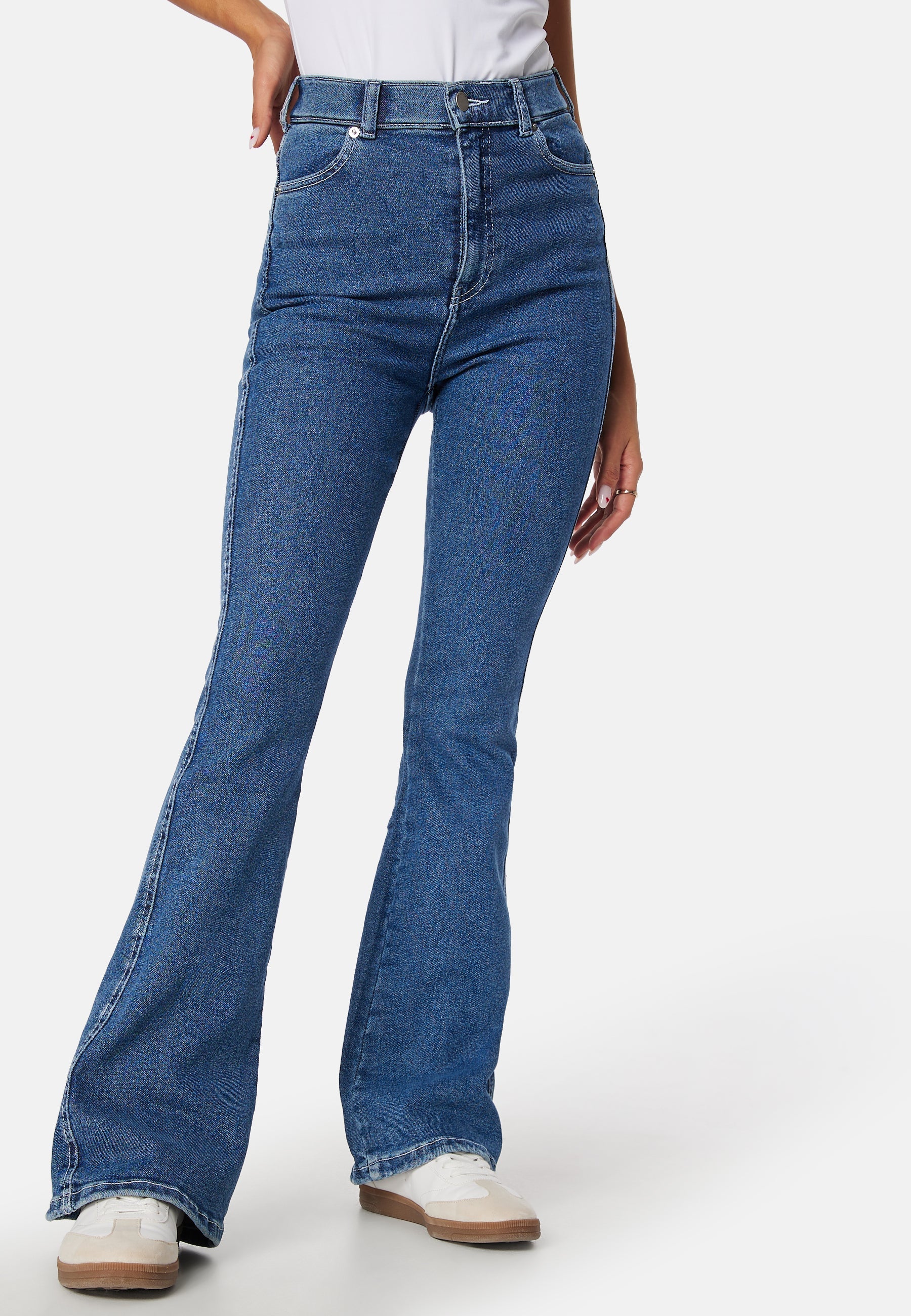 - Figursyet pasform på toppen med ben med svaj nederst.