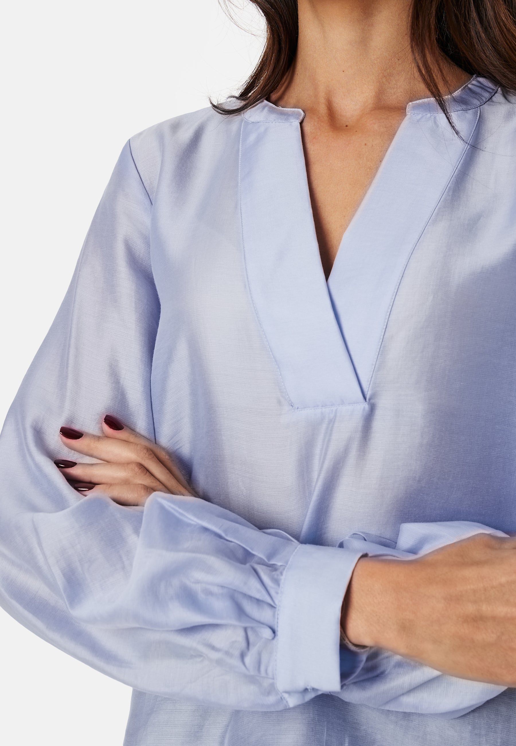 - Knap på ærmeafslutningerne