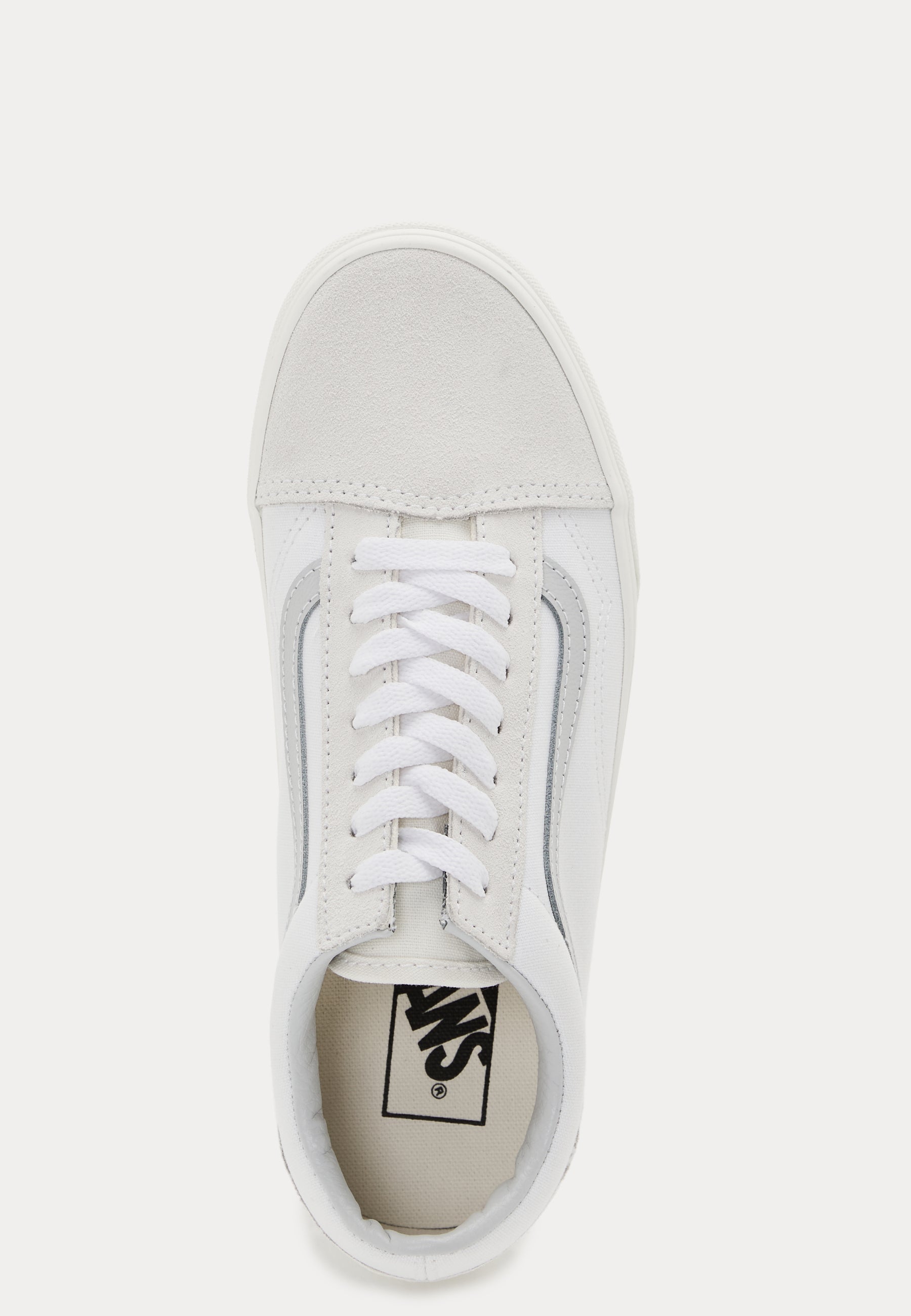 • Disse hvide low-top sneakers er et nemt valg til hverdagen – perfekte til pendling, weekender og afslappede outfits, der lige skal have et rent og enkelt finish. Vans Old Skool holder det enkelt med snørelukning foran, en skarp hvid base og den ikoniske sidestribe i en blød kontrast, som giver dem et klassisk look uden at gøre for meget ud af det.
