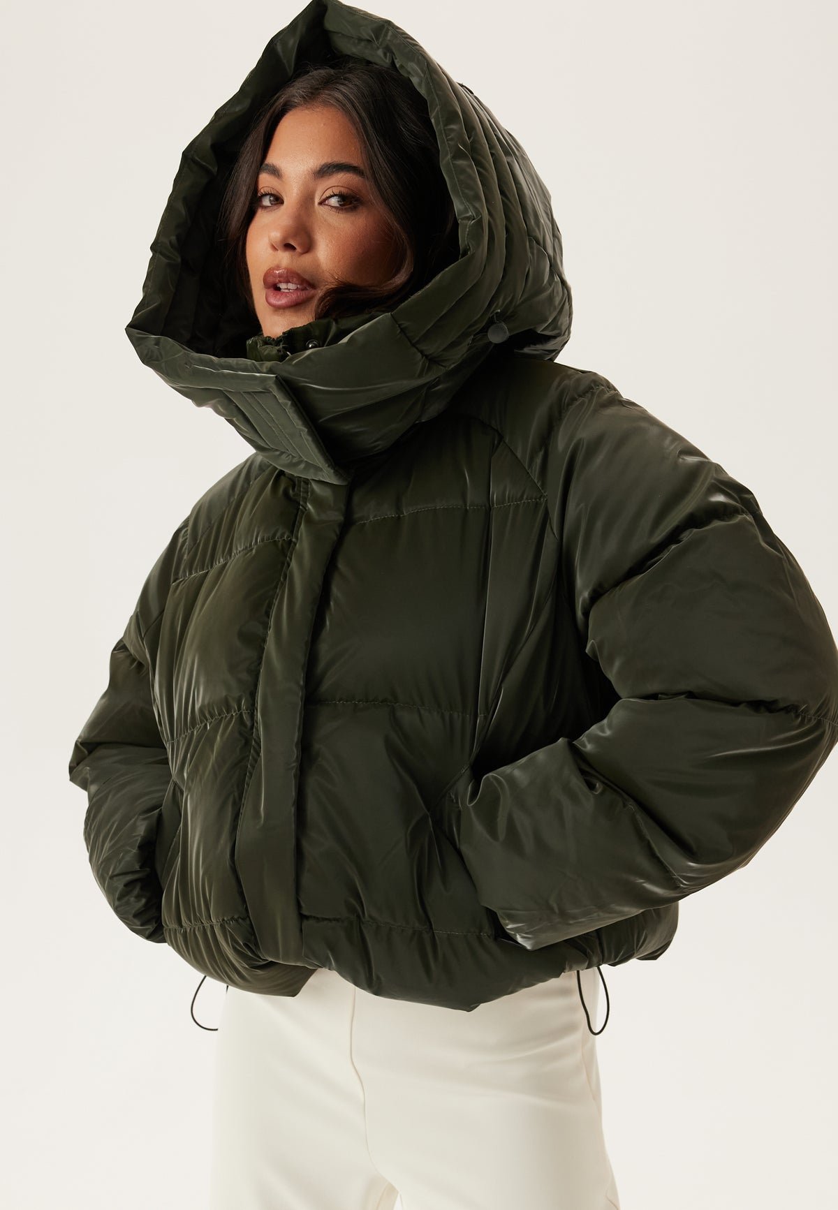 - Træksnørre nederst og ved hætten