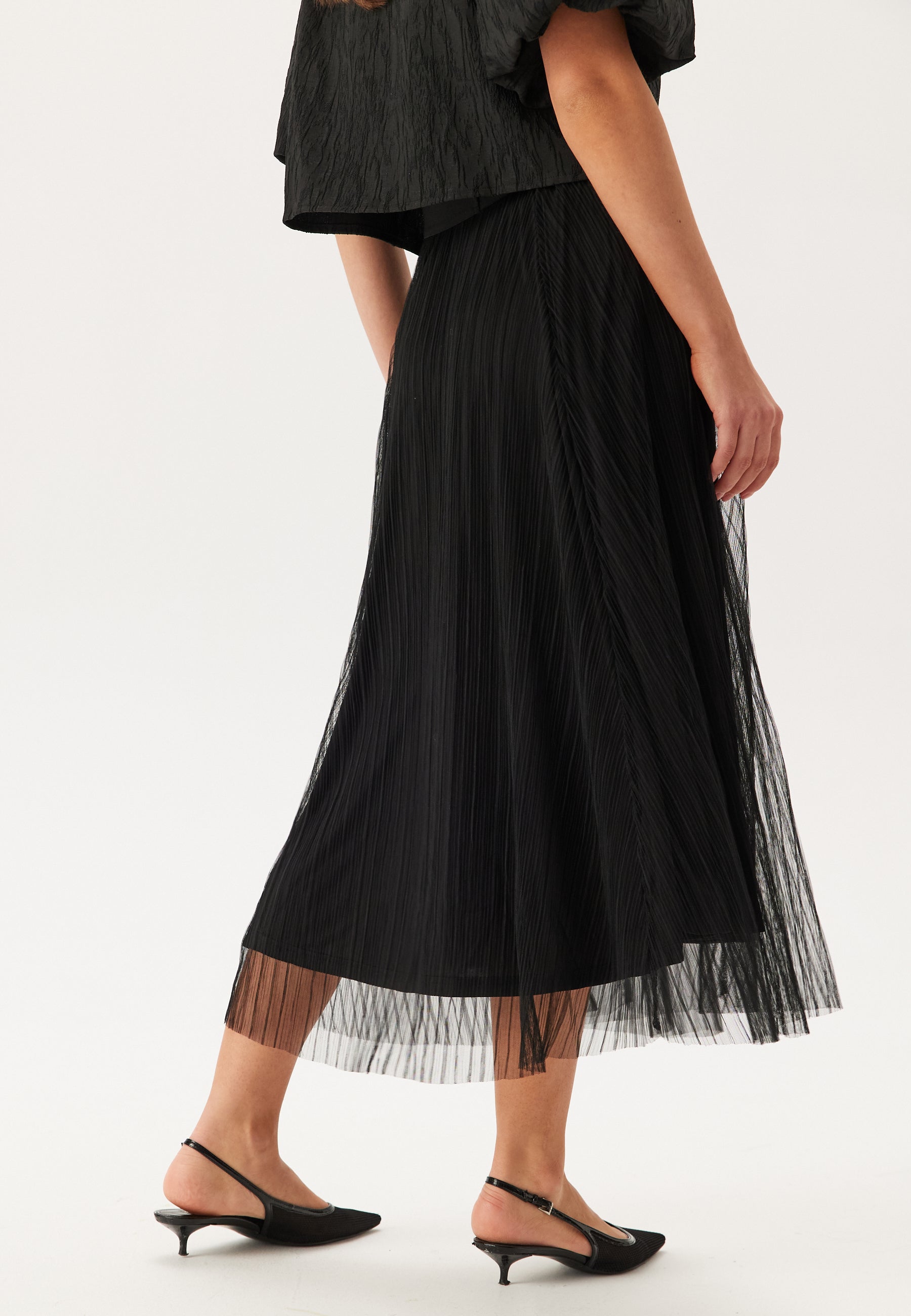 - Meshstof med plisseret effekt.