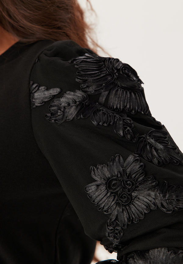 - 3D blomsterdetaljer på ærmerne.