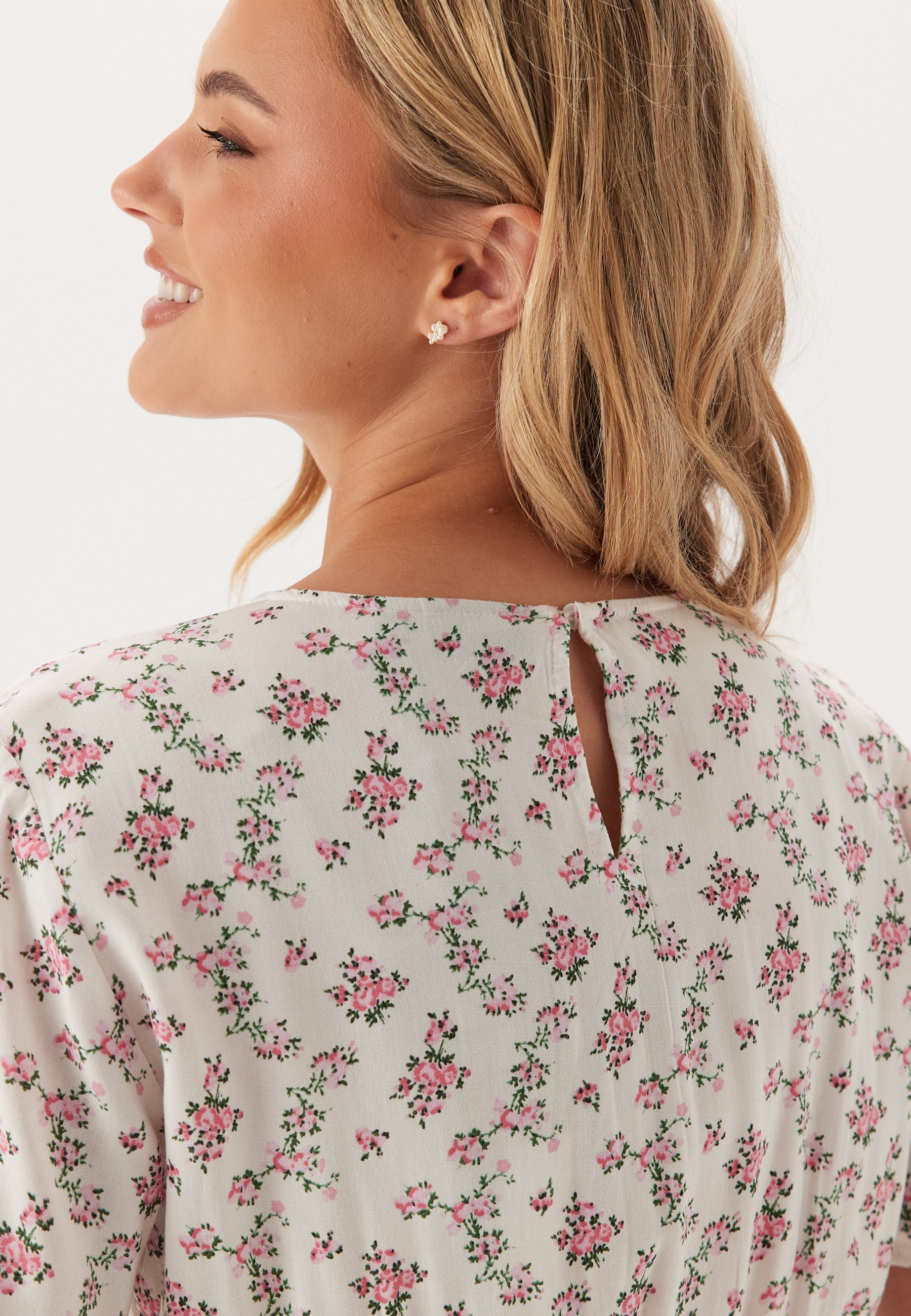 Denne blomstrede minikjole er en nem sommerkjole til hverdagen på varme dage, weekendplaner og afslappede middage, når du gerne vil have noget let, der stadig ser fint ud. Det bløde, lette stof og den normale pasform gør den behagelig at have på, mens det fine print over det hele giver et friskt og romantisk udtryk, der fungerer lige så godt med flade sko som med sandaler.