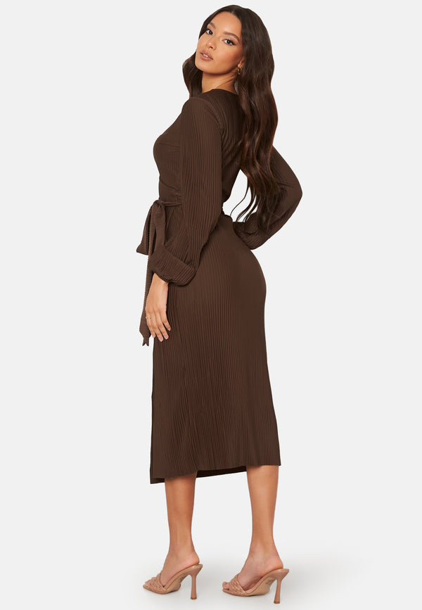 Pleated Wrap Midi Dress