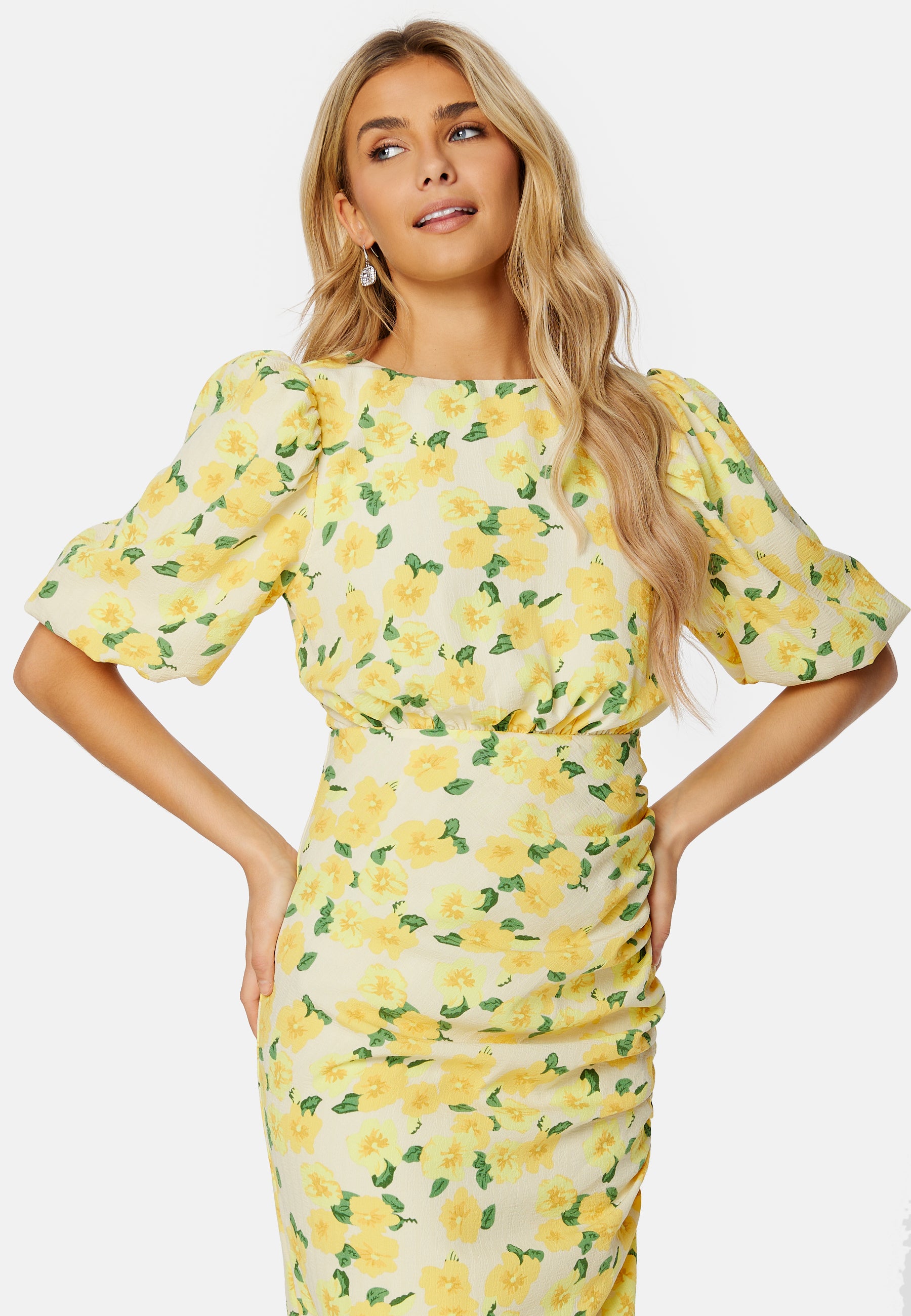 Puff Sleeve Bow Midi Dress