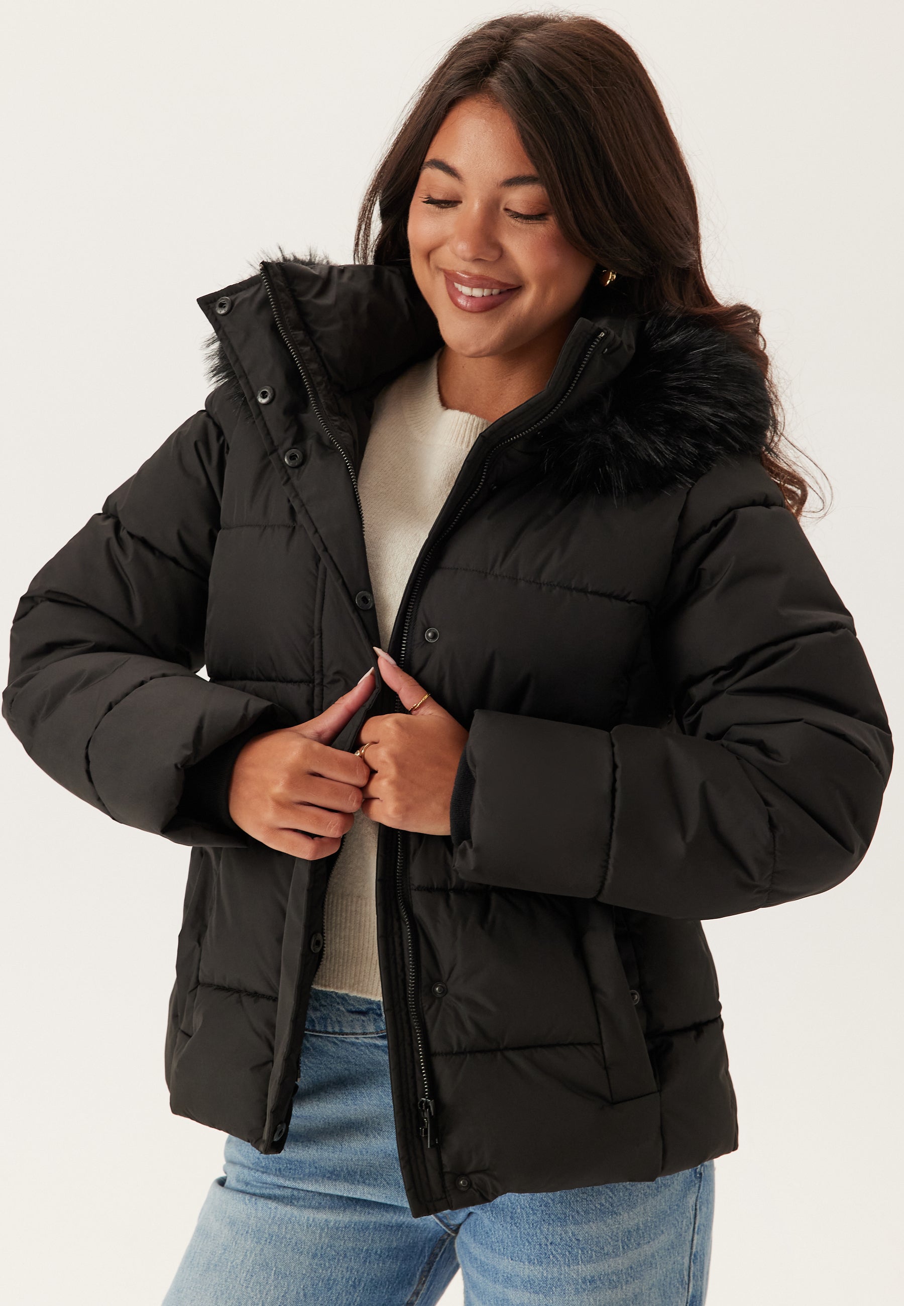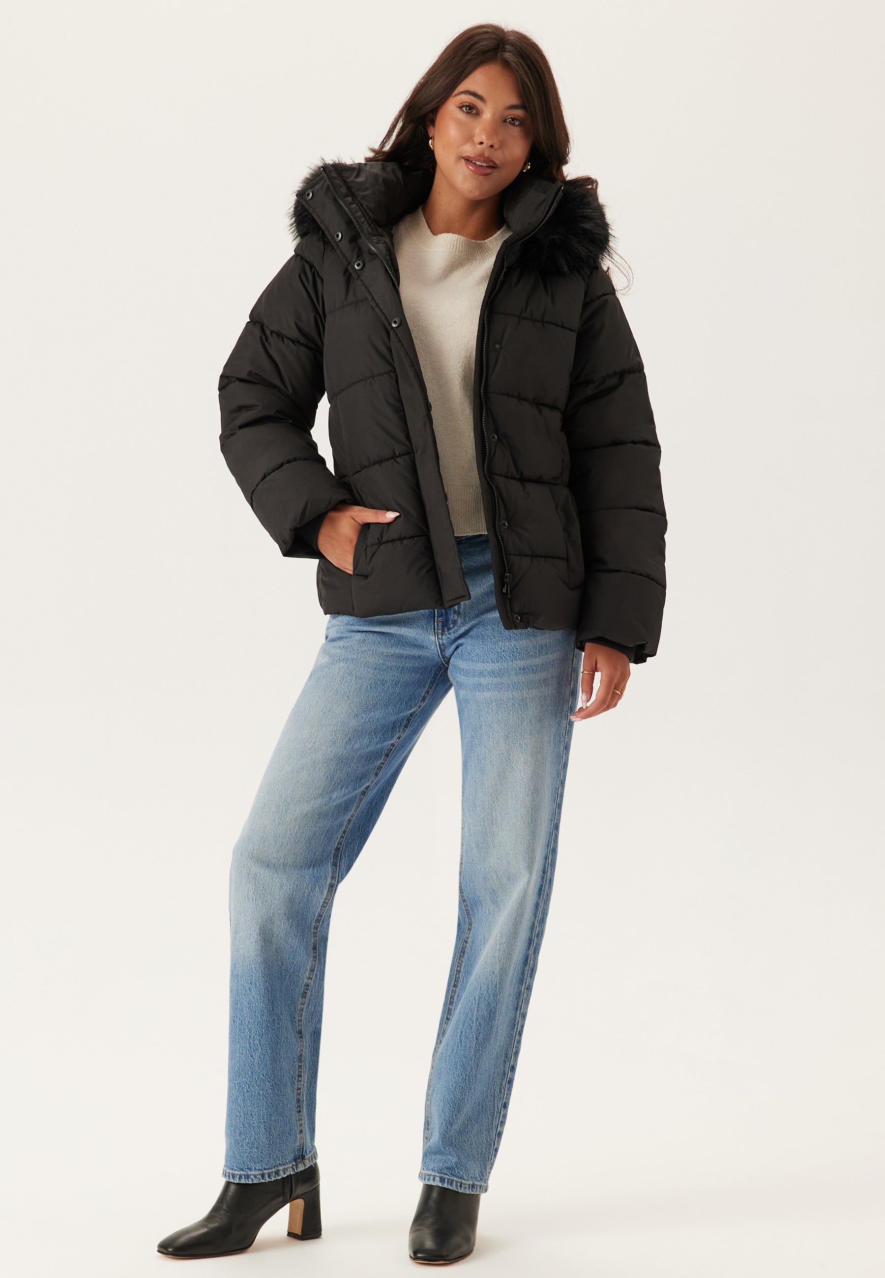 - Hætte med en aftagelig pels