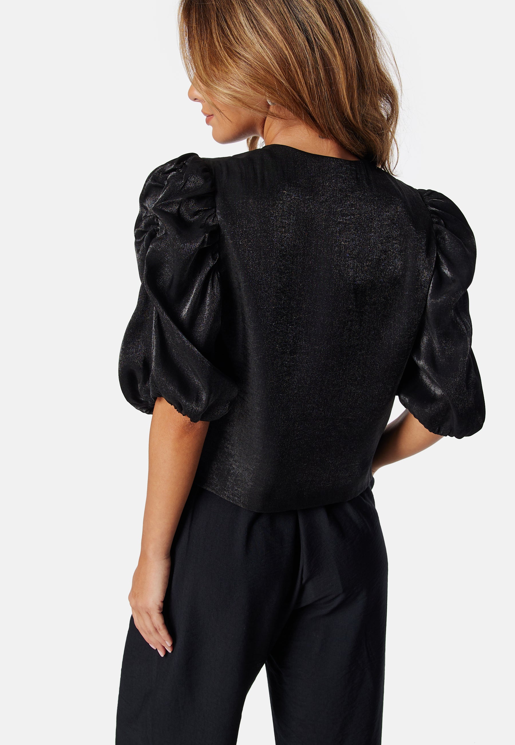 Festlig bluse fra BUBBLEROOM. - Vævet, skinnende kvalitet.