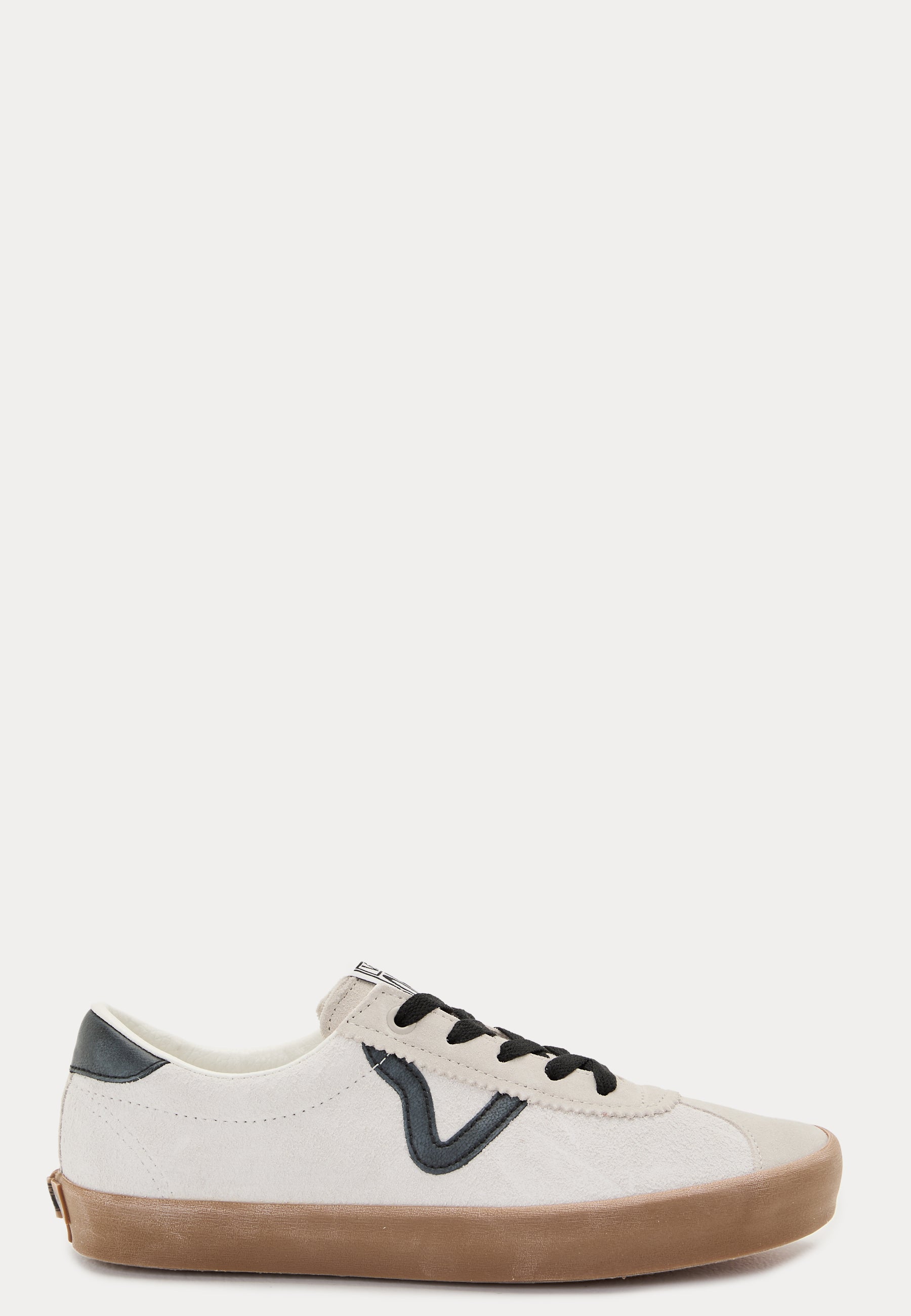 - Farve: Hvid med sorte detaljer og gummifarvet sål