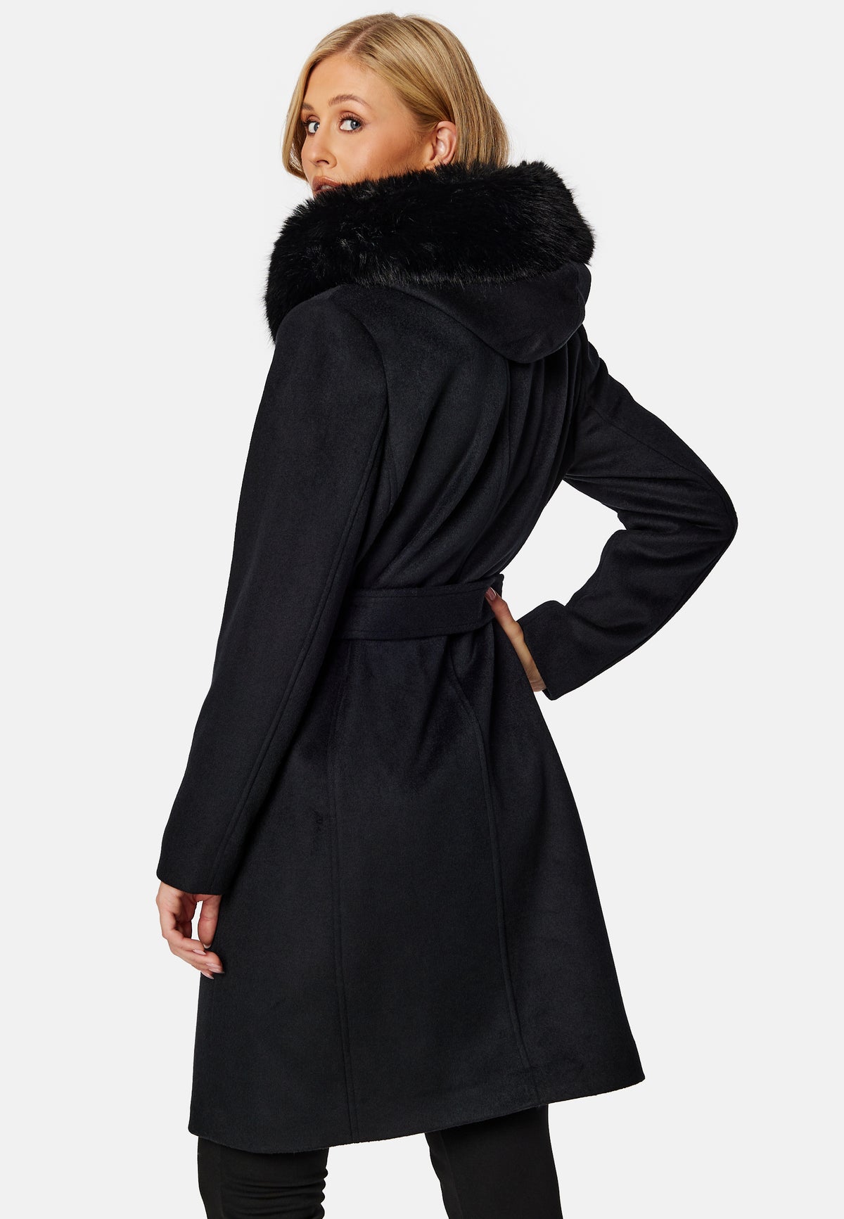 • Elegant frakke fra ROCKANDBLUE med bindebånd og kunstig pels.