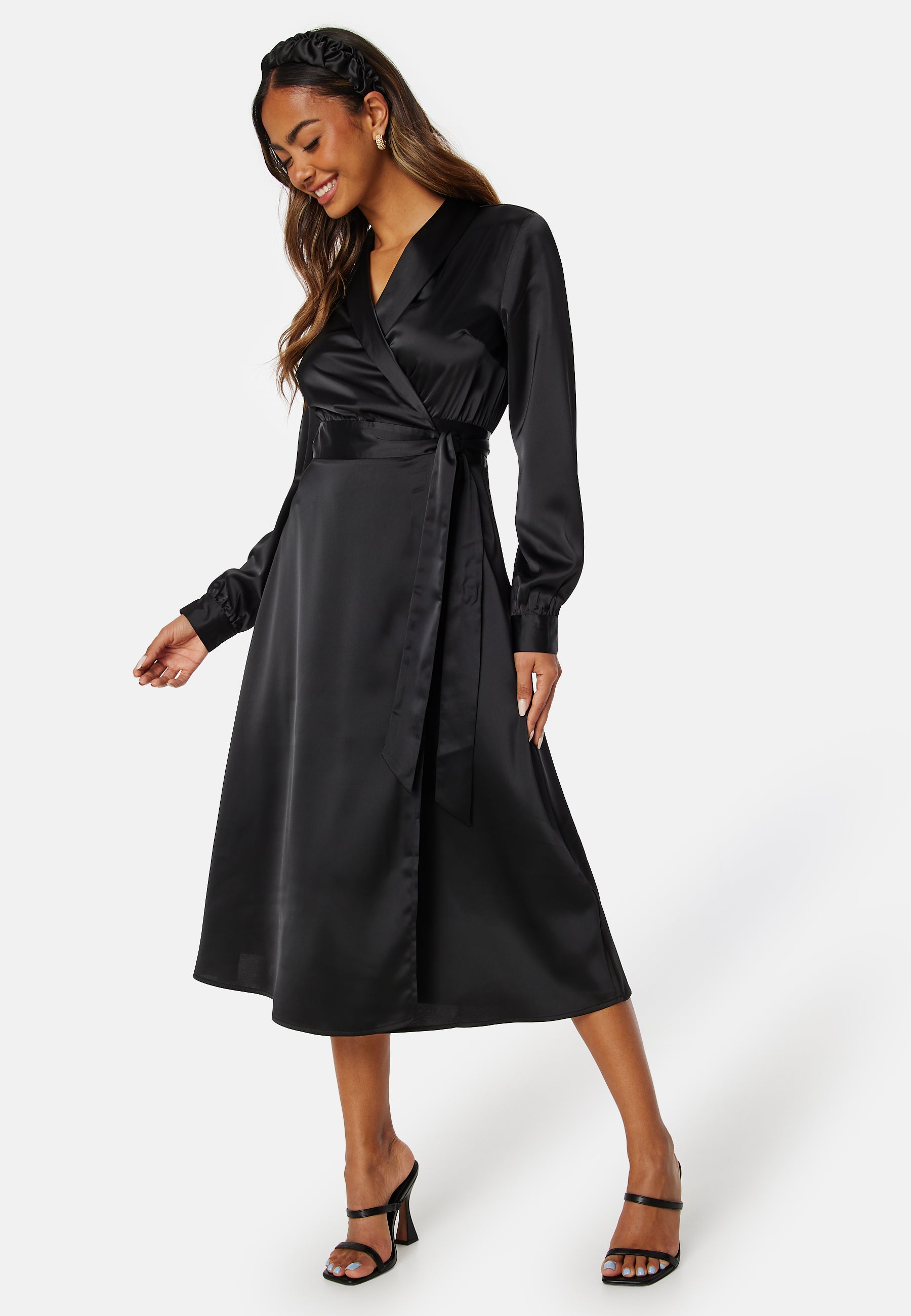 Elegant slå-om kjole fra BUBBLEROOM med satin.