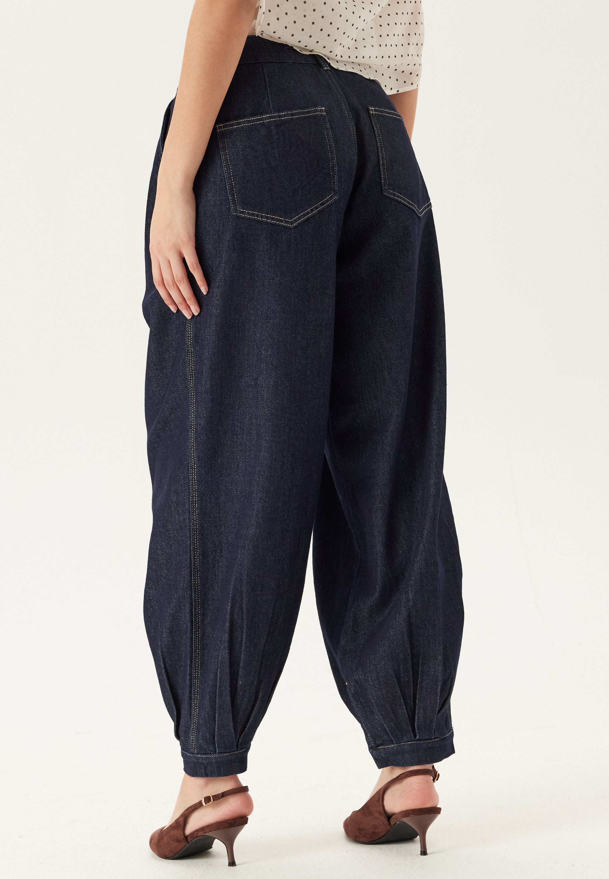 - Bred pasform på toppen med trykknapper ved enden af benene