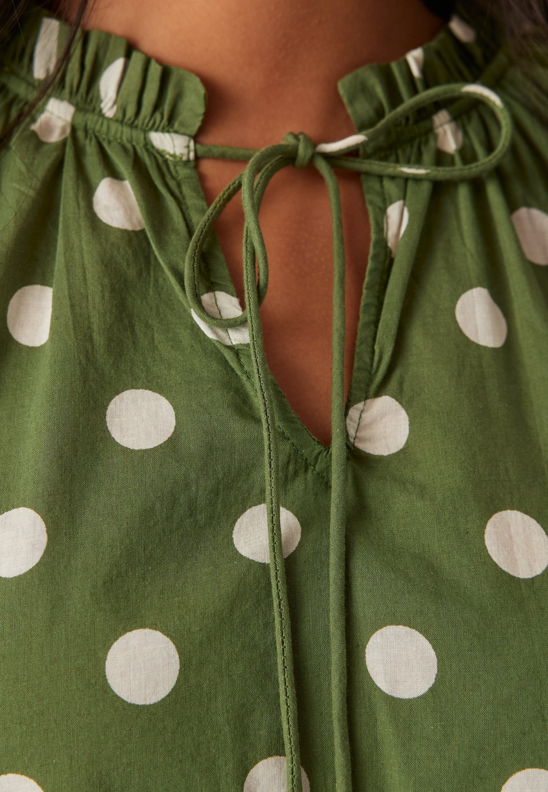 • Print: Grøn bluse med hvide prikker